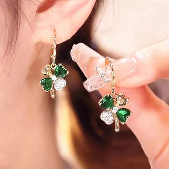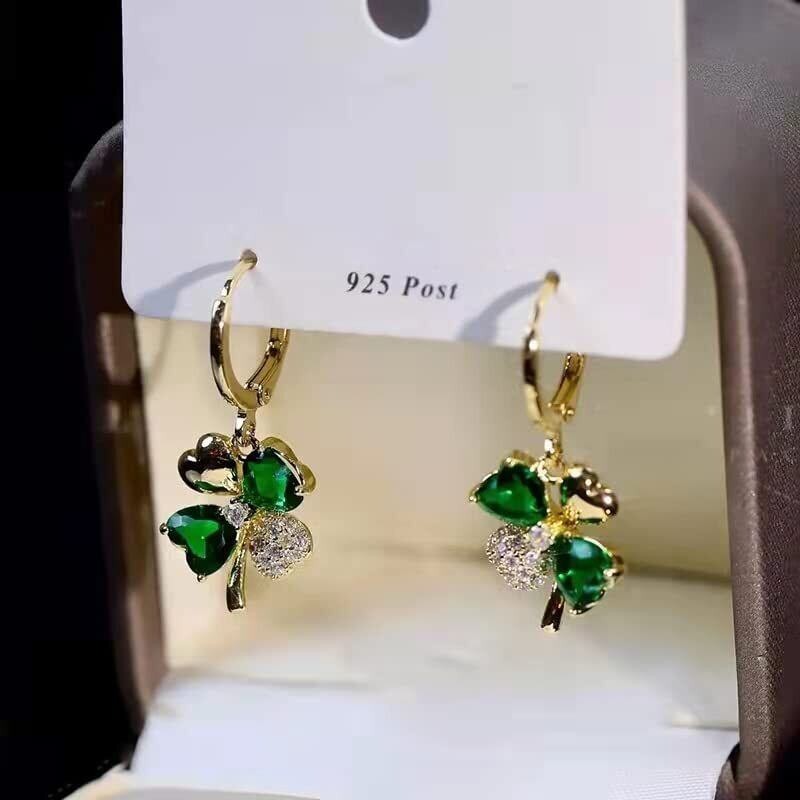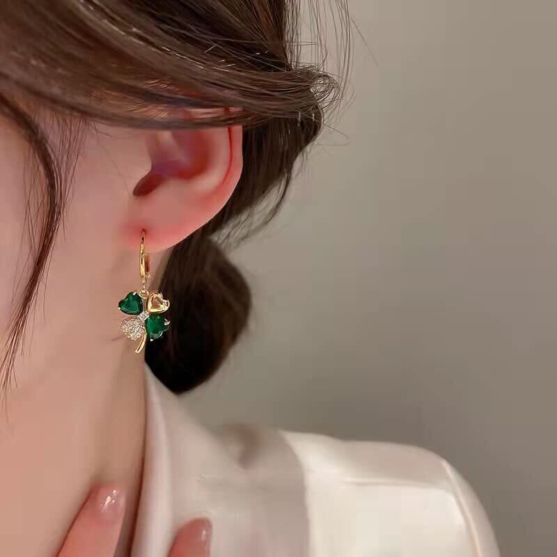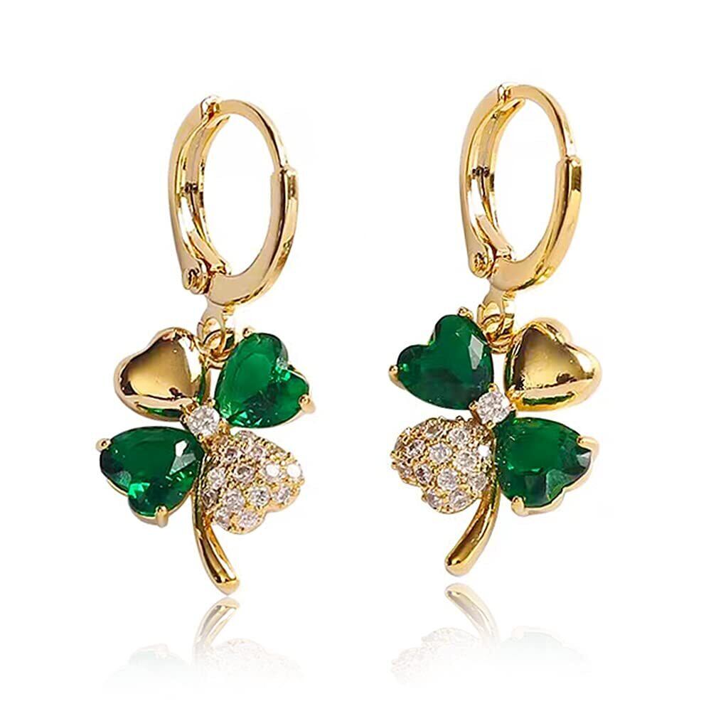 MOUP 緑四つ葉のクローバーリングピアス レディース 人気 金属アレルギー対応ジルコニアアクセサリー揺れるイヤリング…