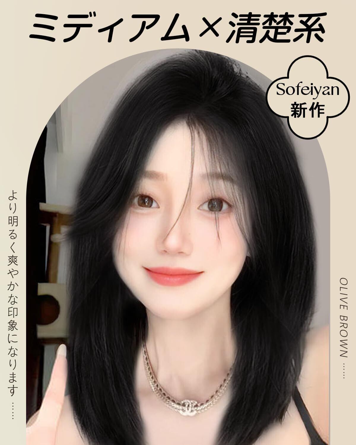 Sofeiyan ウィッグ ミディアム ストレート セミロング 【新・清楚系】 センター分け 自然 小顔 耐熱 かつら 女性 女装 ロリータ コスプ 普段使い ネット付 ファション ウィッグ 黒 茶 ブラウン wig フルウィッグ レディース (ナチュラルブラック)