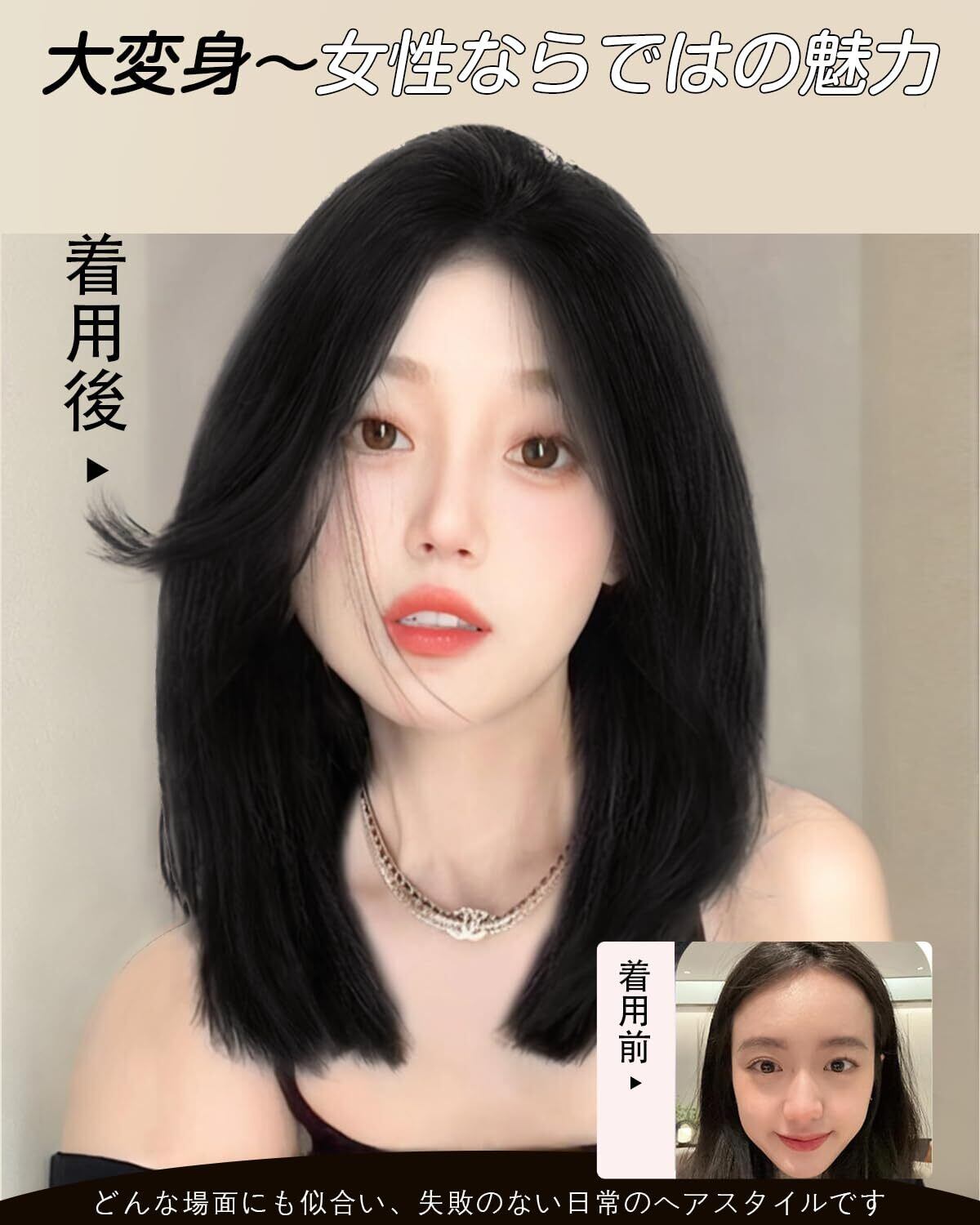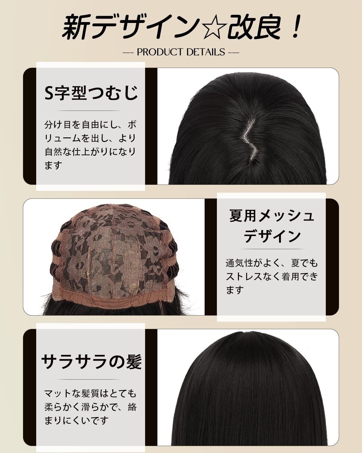 ❀【商品情報】①サイズ:長さ: 頭頂部から毛先まで約43cm、重量:約210g ②:頭囲約50〜56cmの方に適しています ③素材:高品質の耐熱繊維を使用し、160度までアイロンがかかるので、アイロン使用OKです ④カラー:アッシュブラウン、ナチュラルブラック、ブラックブラウン、オリーブブラウン ⑤セット内容:ウィッグ+専用ヘアネット+前髪コーム(色ランダム)+説明書
