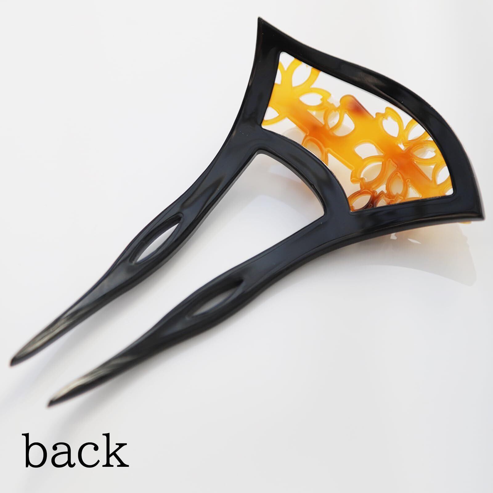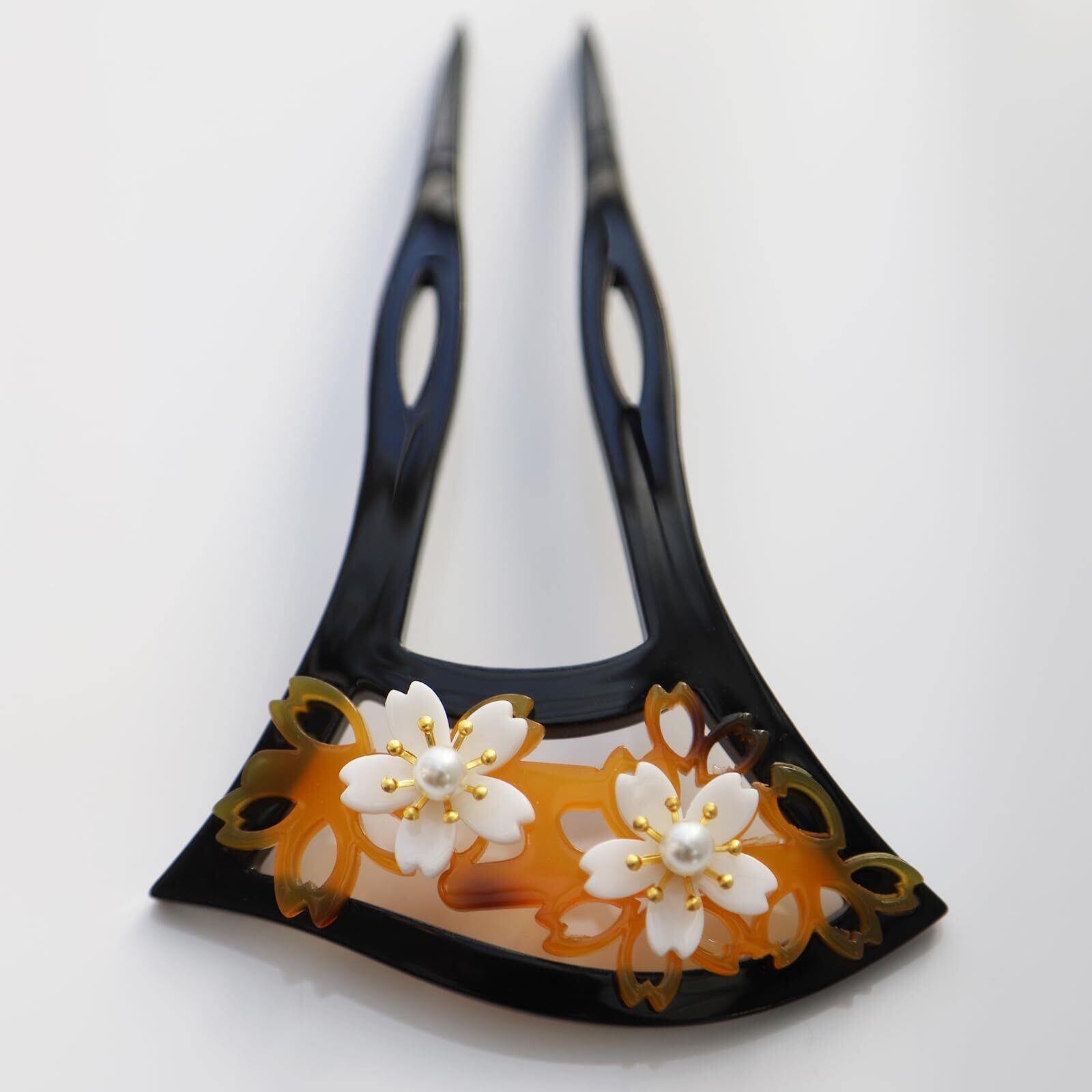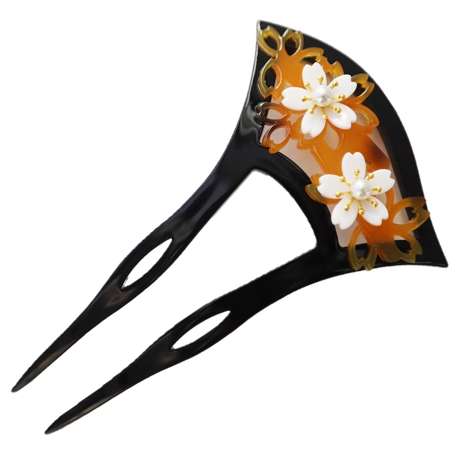 【上品かわいいなバチ型簪】立体感のあるとても可憐で上品なかんざしです、さくらをイメージしたデザインで美しいべっこう色が特徴です。派手すぎず上品な色使いで、着物姿をより美しく彩ります。
