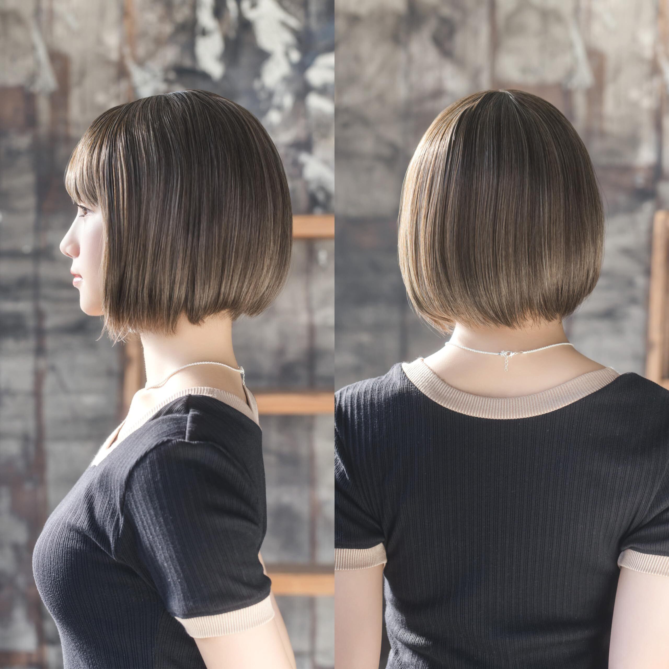 人工頭皮付きのI型つむじでウィッグ感の少ない、自然なスタイル。
