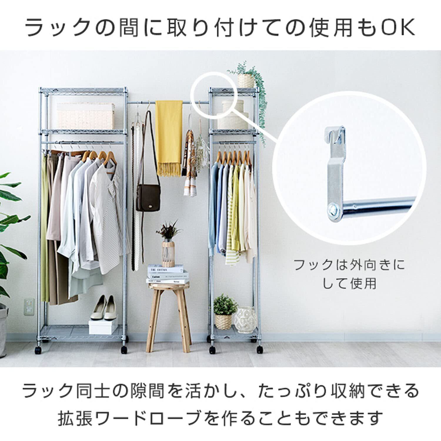 シェルフに取り付けることでラックをワードローブとしてご使用できます。伸縮タイプなので幅30~45cmの棚に適応できます。ルミナスポール径19mm専用パーツになります。