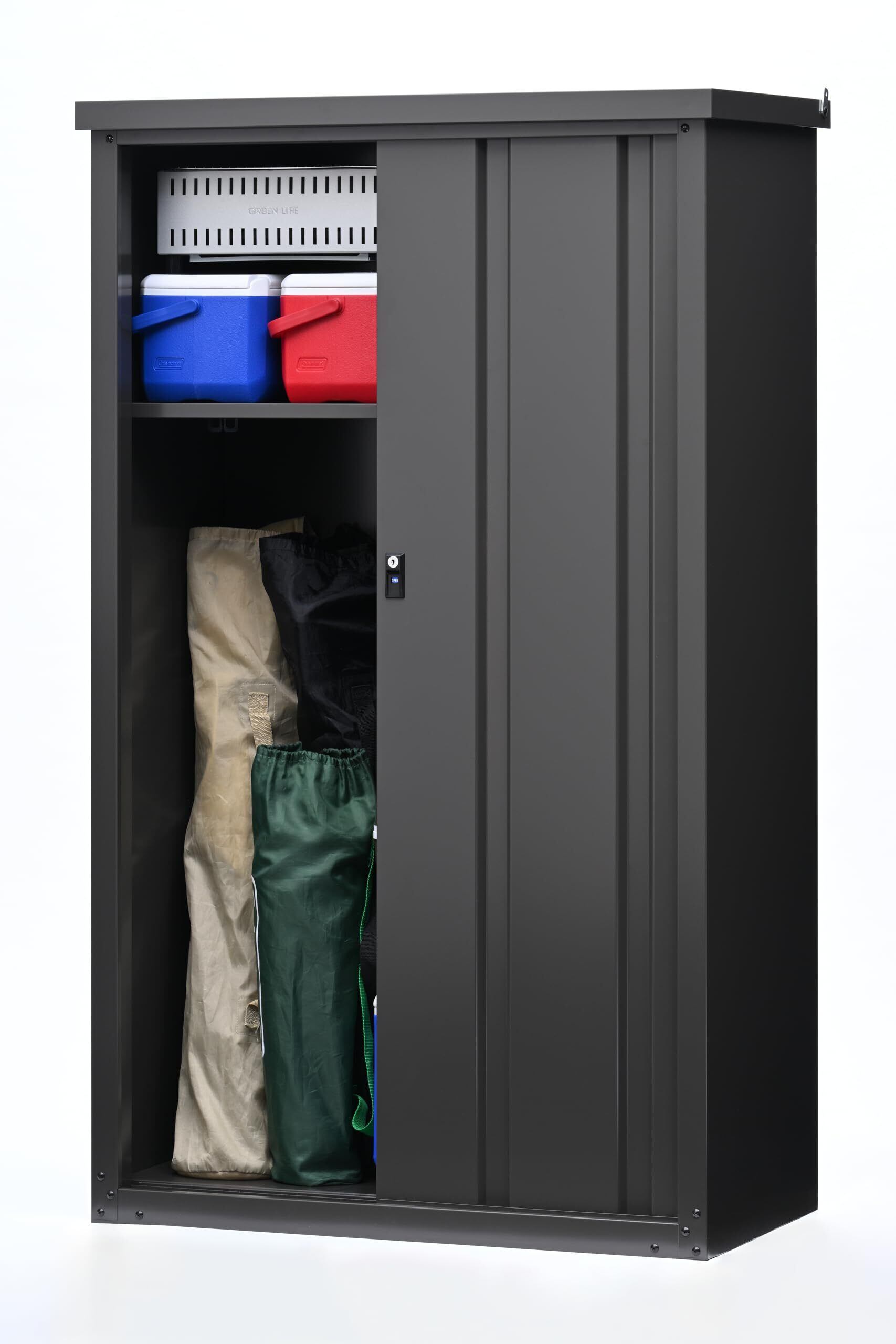 グリーンライフ 物置 収納庫 屋外 大型 【日本製】棚板1枚・鍵付き・長尺収納可(幅92×奥行48.5×高さ154cm)アッシュグレー 錆に強い 調整可能な可動棚 HSB-153(AGY)