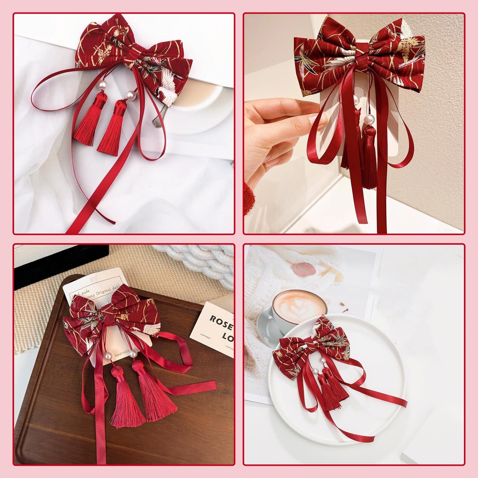 ZHEJIA ヘアクリップ 和風ヘアアクセ 成人式 和装 浴衣 ヘアピン 髪飾り 結婚式 卒業式 七五三 上品 おしゃれ 跡がつかないピン ヘアアクセサリー 赤