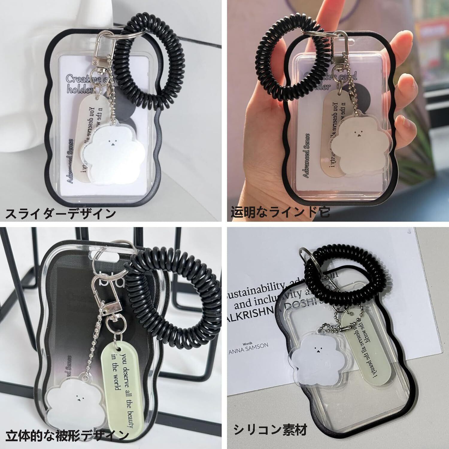 パスケース 定期入れ カードケース ストラップ付 ネームホルダー カードケース クリア窓 かわいい キーホルダ付き ペンダント付き シリコーン トレカケース トレカホルダー 通勤 通学 社員証 ID ICカード ICOCA SUICA 電車 バスカードカバー (ブラック A)