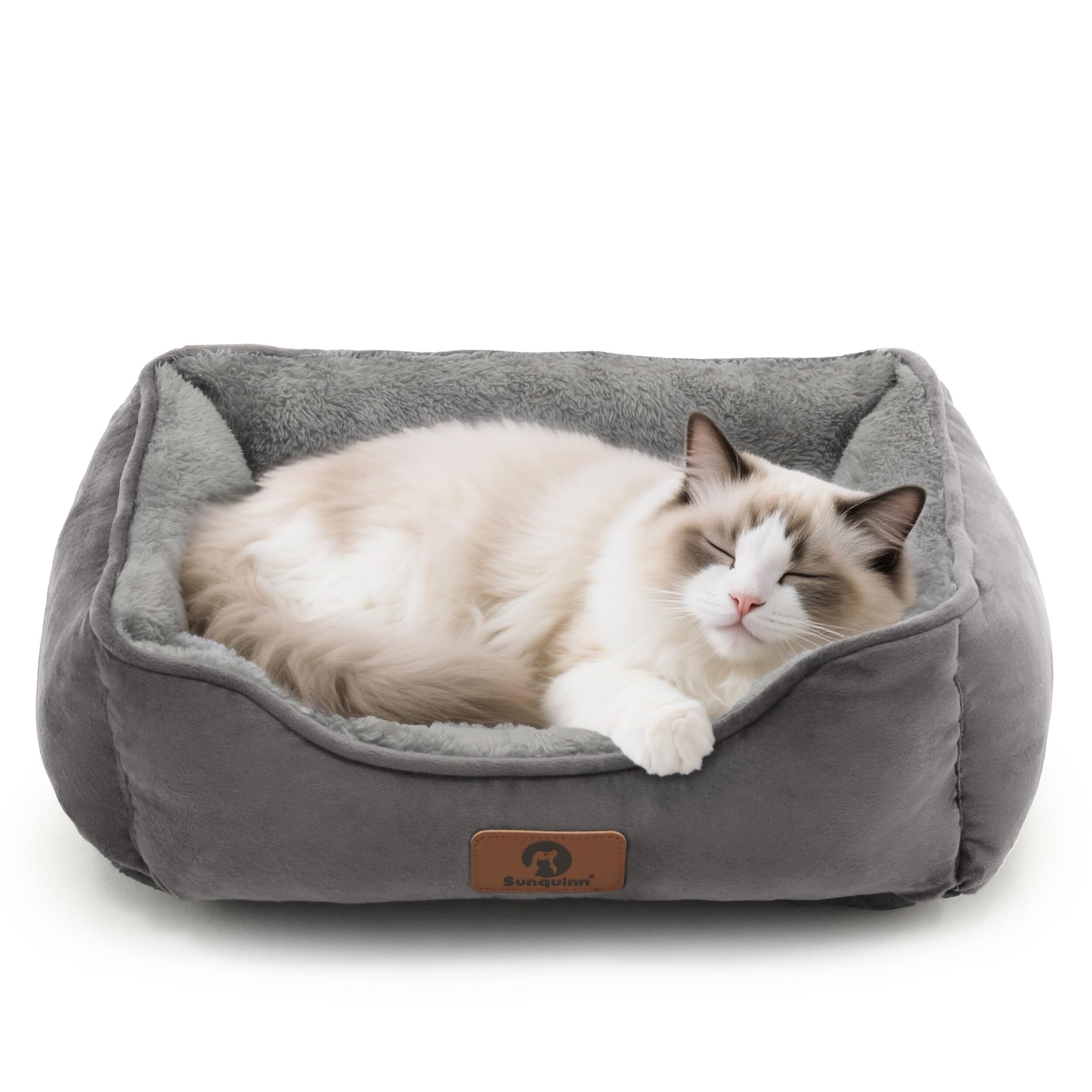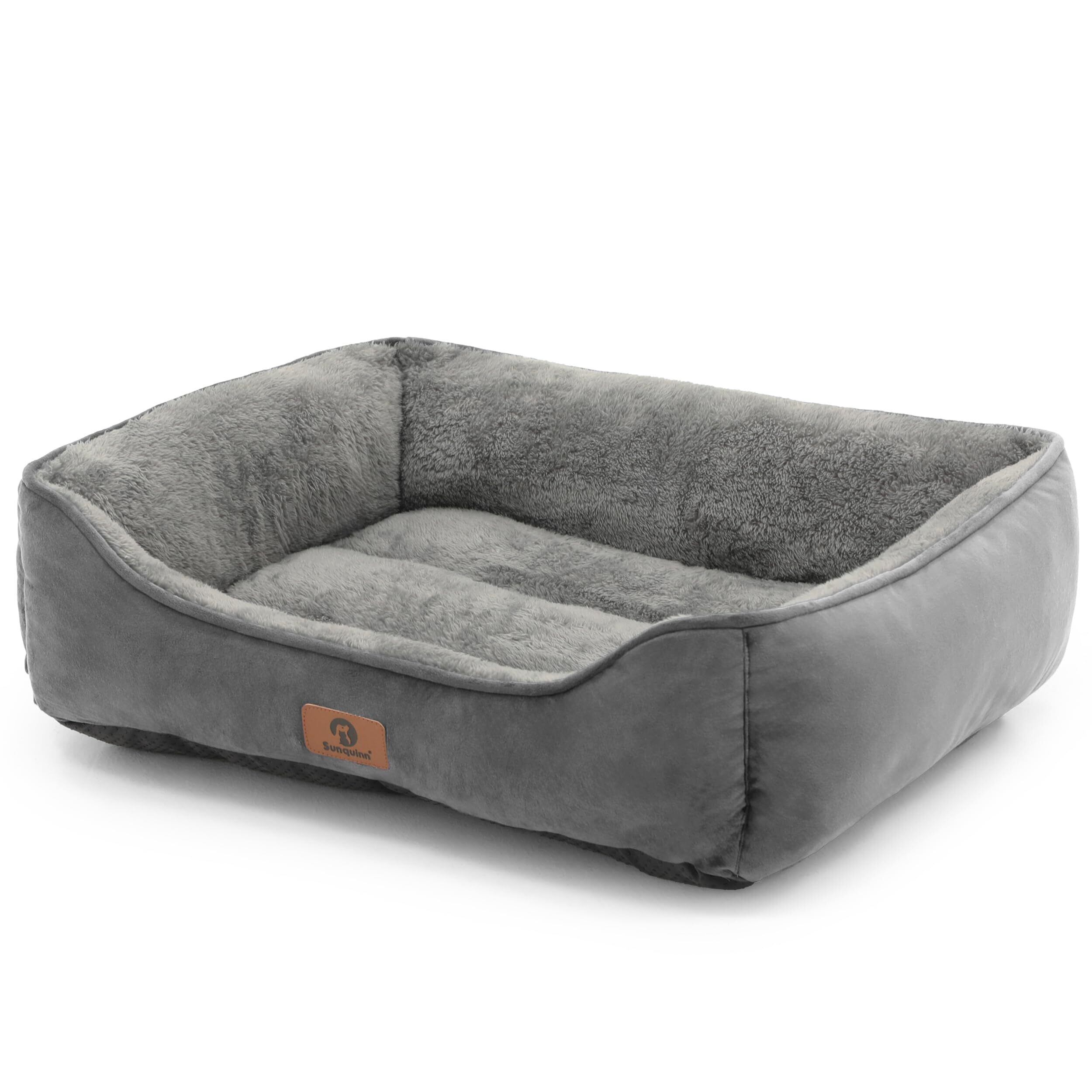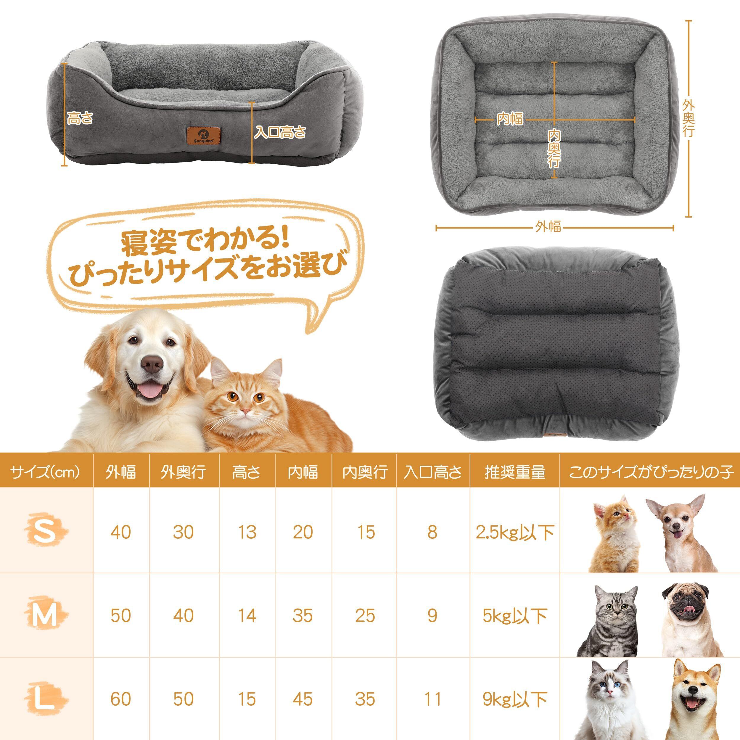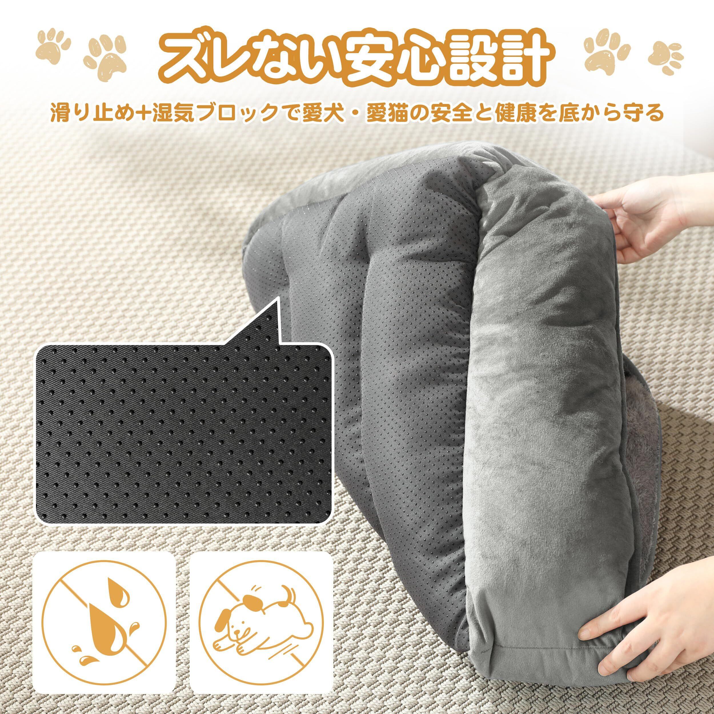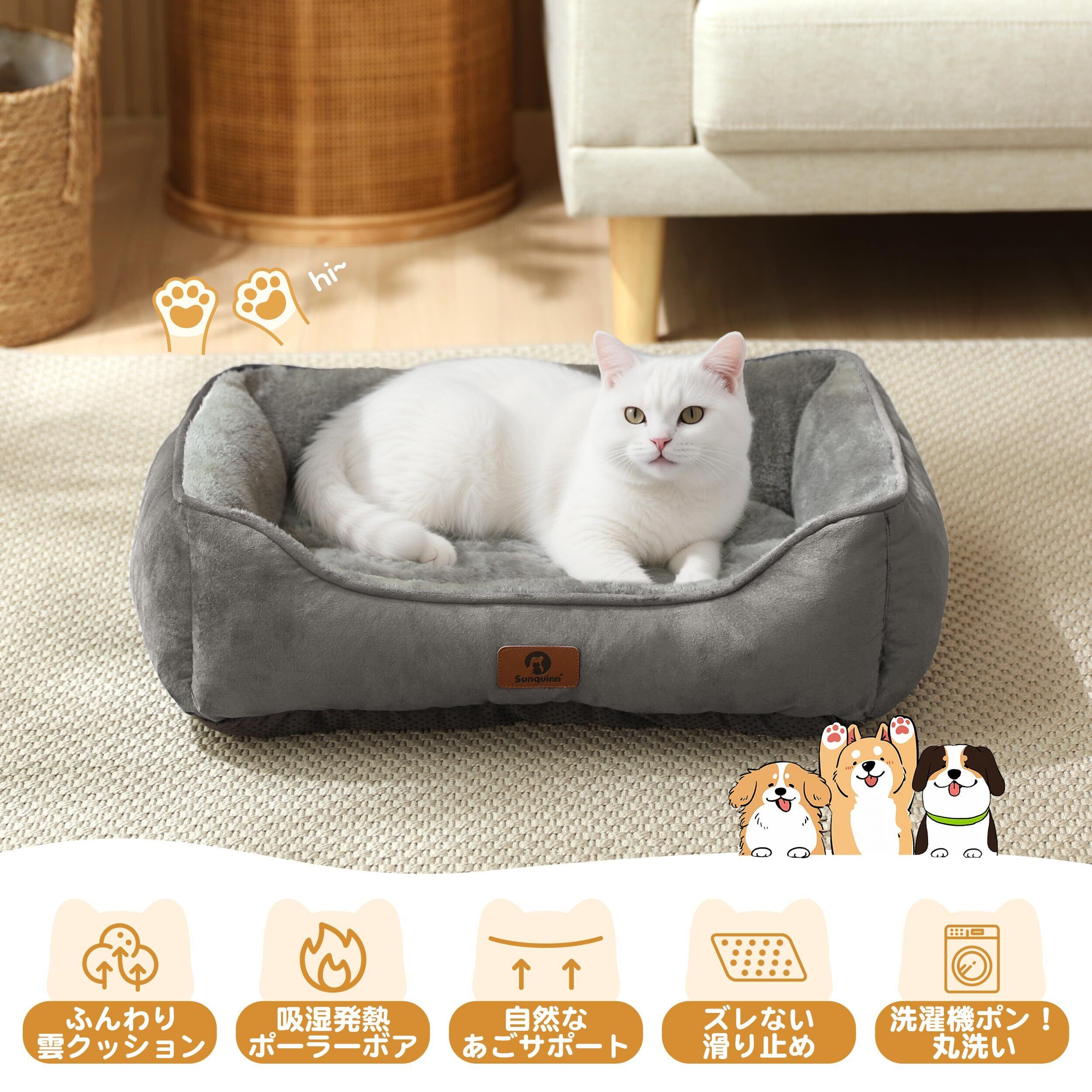 猫 犬 ベッド 猫ベッド 冬 ふわふわ 犬用 ペットベッド 吸湿発熱 保温 洗える 滑り止め クッション 暖かい 寒さ対策 丸洗いOK スクエア型(外寸50Lx40Wx14Hcm グレー)