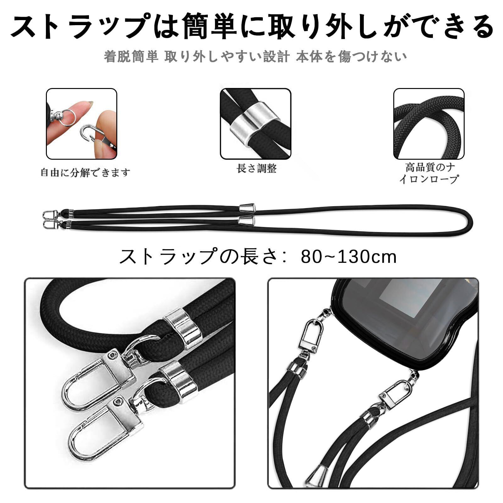 【多用途のストラップ】高品質なナイロン材質を採用して、拔群な丈夫性、高い耐久性と耐摩耗性があります。長さが簡単に調整できるタイプので、首掛けだけでなく、斜め掛けも可能です、携帯電話が紛失する恐れはなし。このアクセサリーはファッションだけでなく、通常のストラップよりも快適で実用的です。 作業、旅行、出張、ショピング、散歩、コンサート、パーティーに最適です。