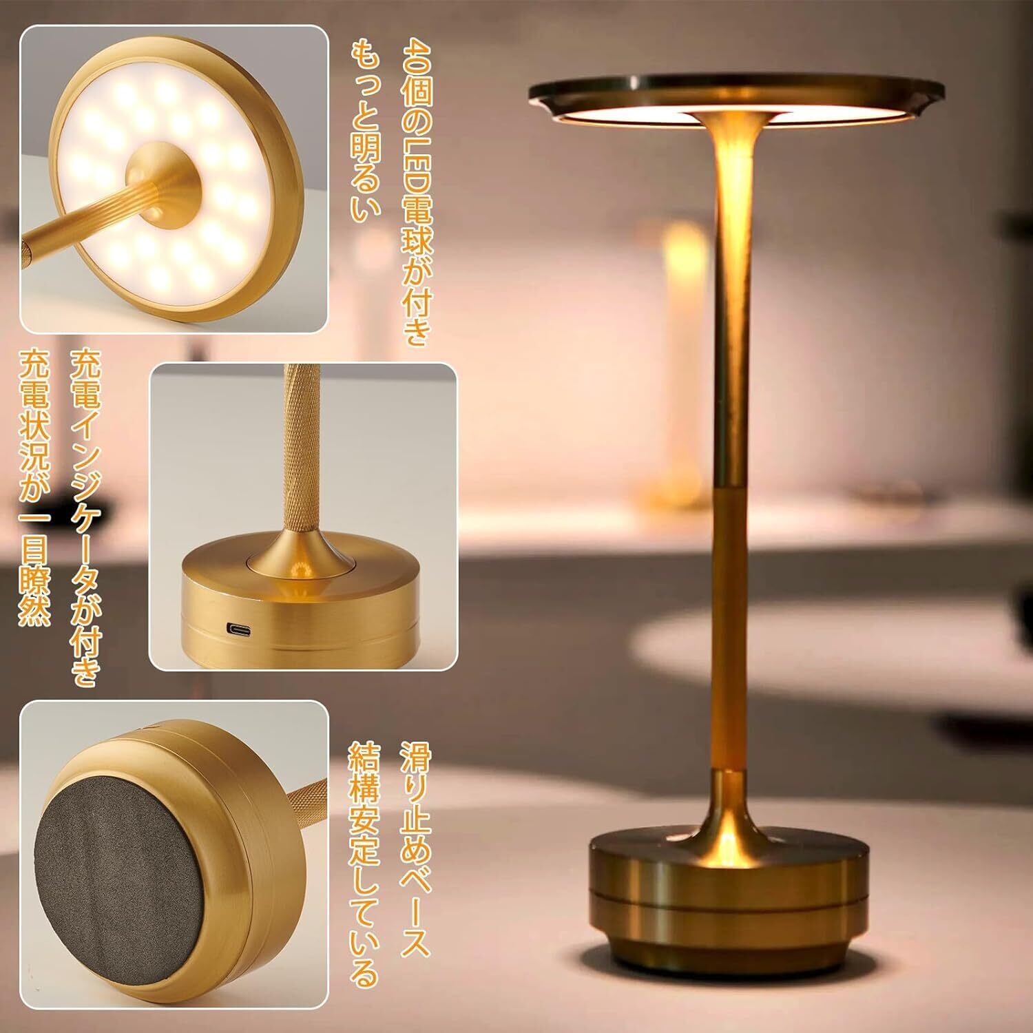 間接照明 おしゃれ コードレス Yokatta テーブルランプ 8000mAh 3色切替・無段階調光・光色輝度メモリー機能・充電式・タッチ制御 卓上 インテリア ライト LED デスクライト ベットサイドランプ 置き型 ナイトライト 目に優しい 哺乳ライト キャンプ/バー/ダイング/雰囲気作り/常夜灯/プレゼント (ゴールド)