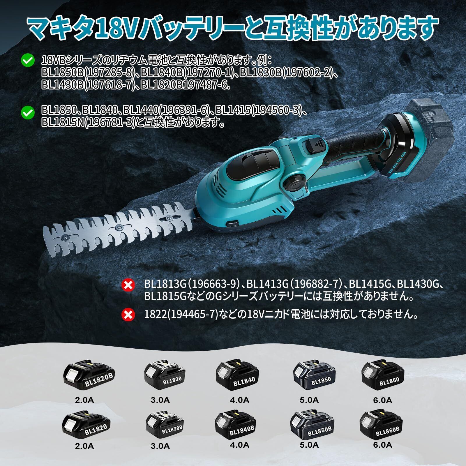 【マキタ18Vバッテリー対応可能】:電動ヘッジトリマー マキタ18Vバッテリー対応可能!ブラシレスモーター 面倒な充電器の追加購入が不要。既にお持ちのマキタ18Vシリーズバッテリーでそのまま使用可能。コスト削減と利便性を両立した次世代型充電式ヘッジトリマーです。庭木剪定や垣根の手入れがもっと手軽に。