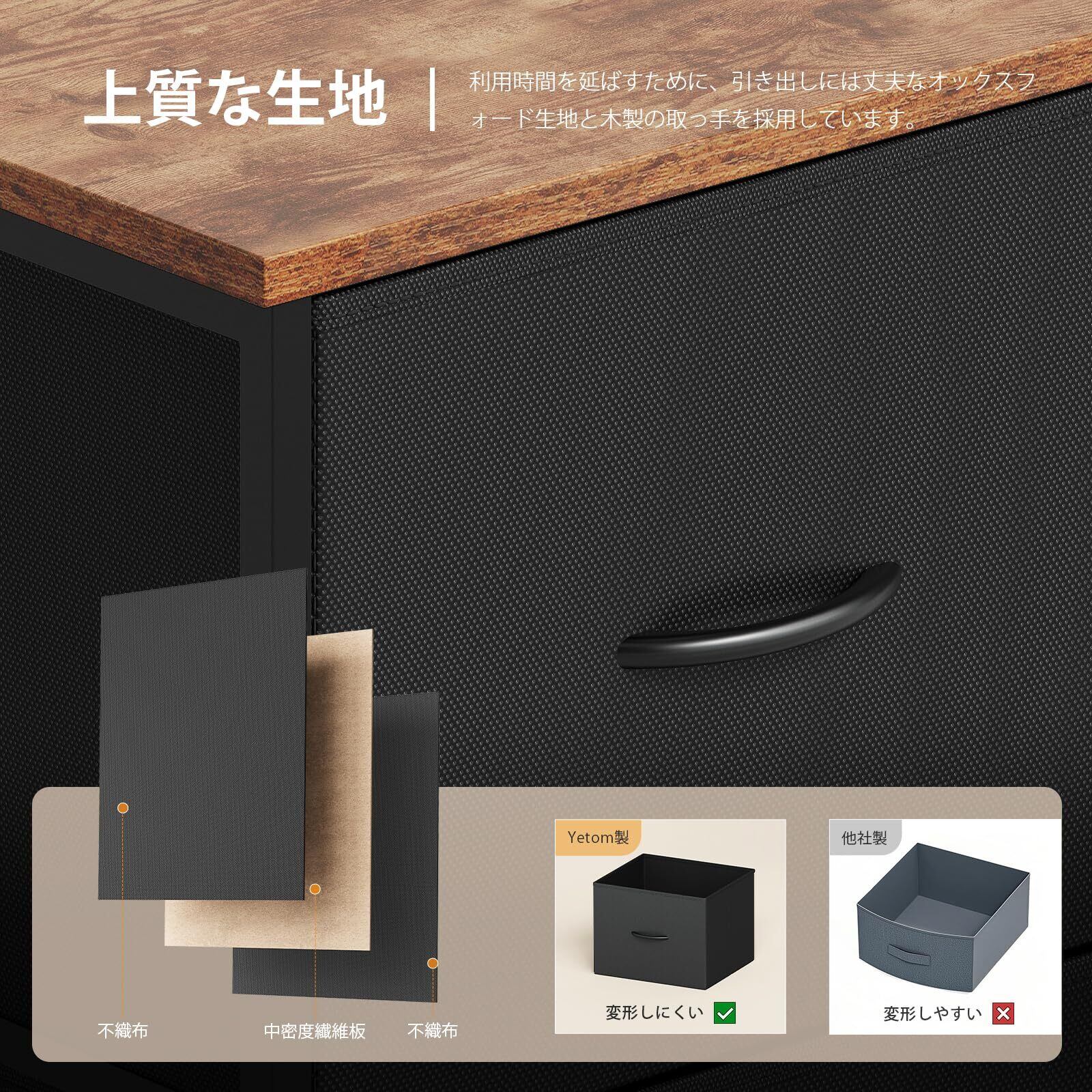 【製品材料の安全性】:布製引き出し収納キャビネットの主要部材は、厳しい国際安全基準(ASTM/TUV)をクリア。天板と引き出し内装は有害物質を抑えたP2等級材を採用。不織布の引き出しは難燃加工で、より一層の安全をお約束します。