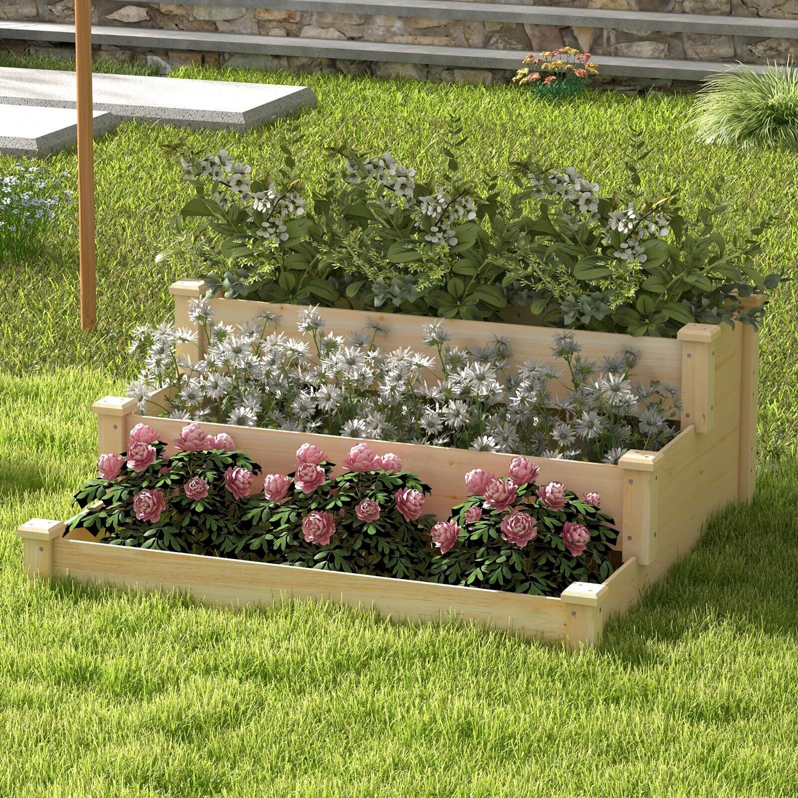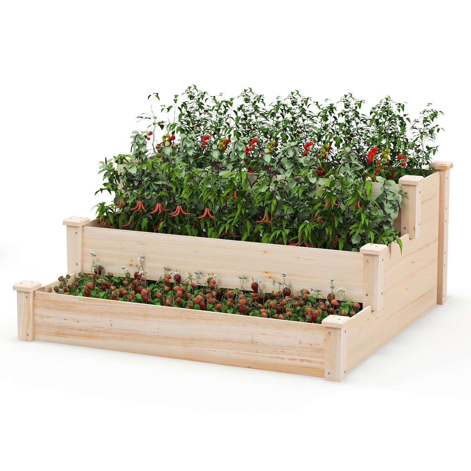 プランター 3段式 深型 幅118x奥行118x高さ56cm 木製 長方形 大型 家庭菜園 おしゃれ 野菜 花 ハーブ アサガオ イチゴ 小松菜 ガーデニング 屋外 野菜用プランター 園芸用品