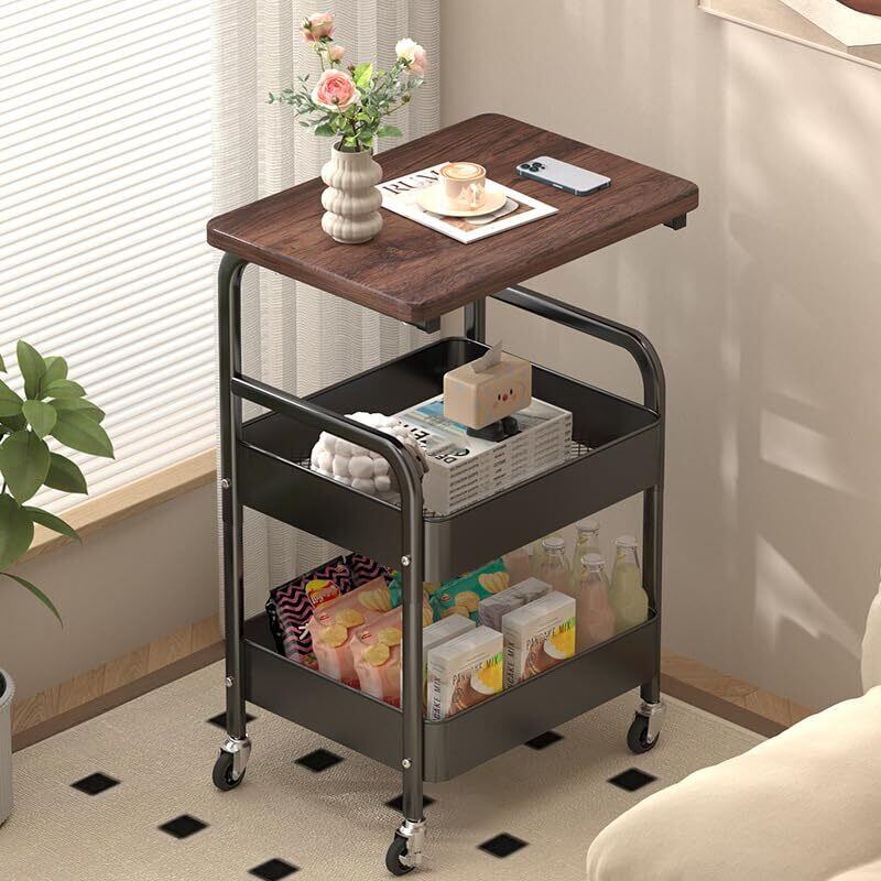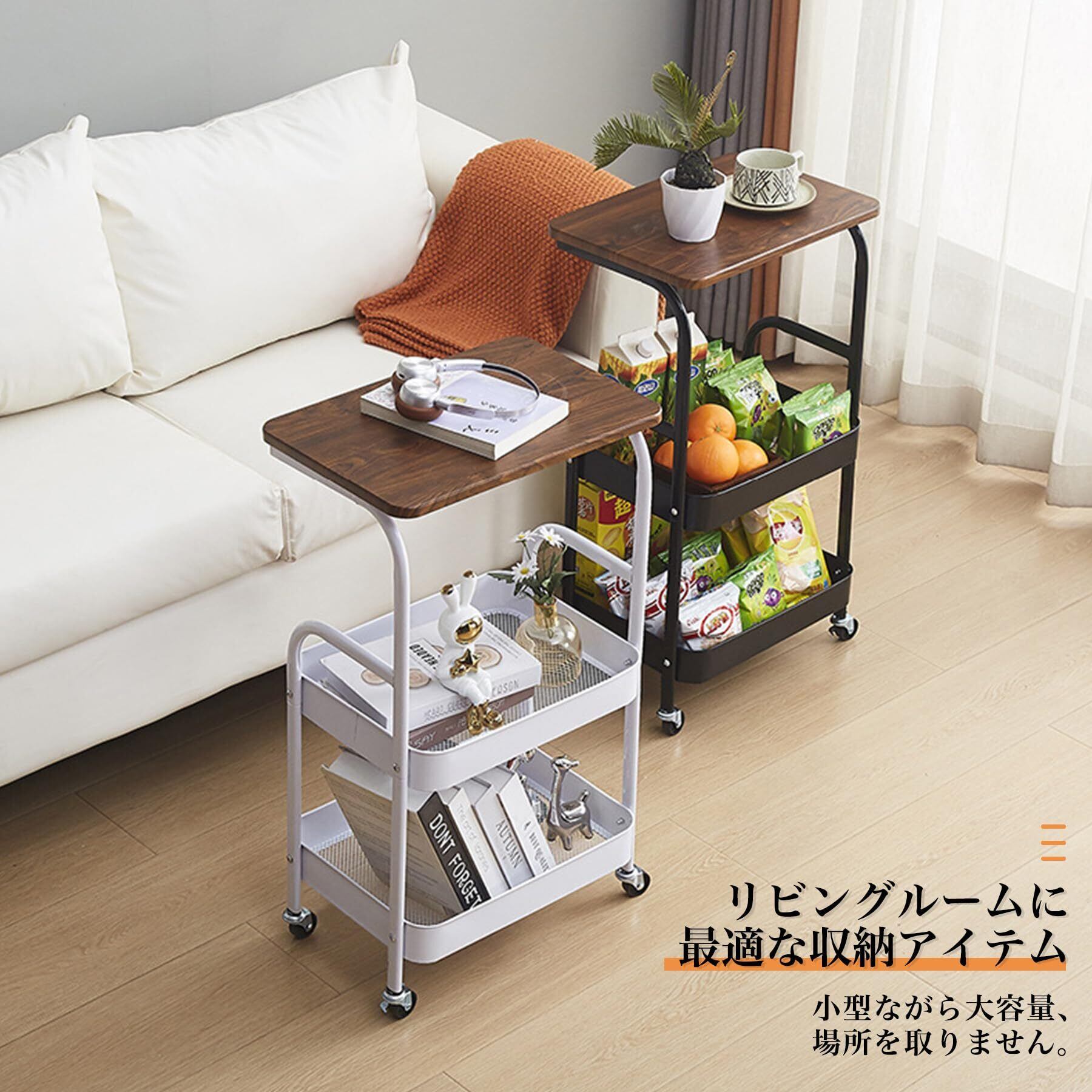 ベッドサイドテーブル ベッドサイド 収納 サイドテーブル キャスター付き 移動式 3段 木天板タイプ 収納 小物 (ブラック, 76*42*30cm)