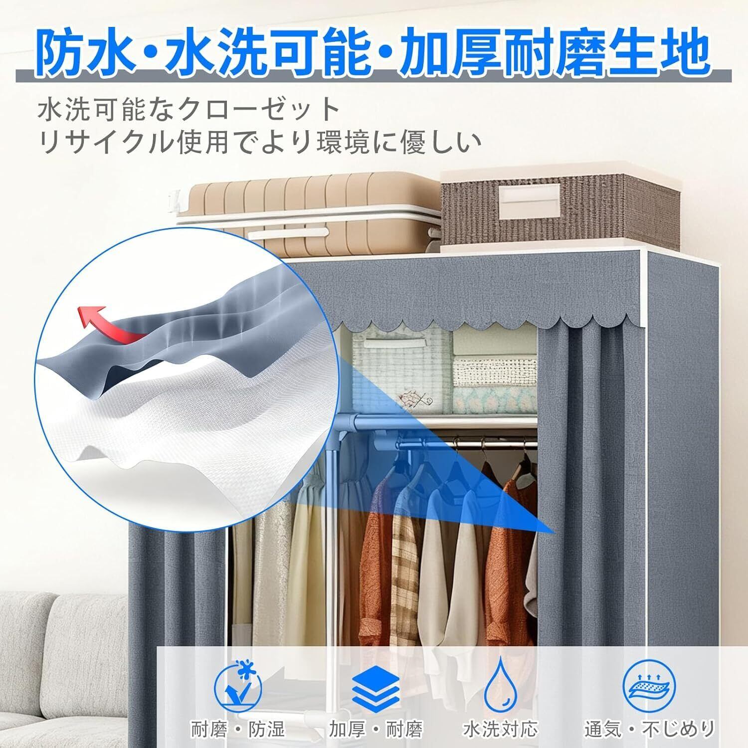 不織布カバーが衣類をしっかり保護 - 厚手不織布カバーが紫外線・ホコリ・湿気・虫食いをブロック。洗濯可能で取り外し簡単、メンテナンスも手間いらず