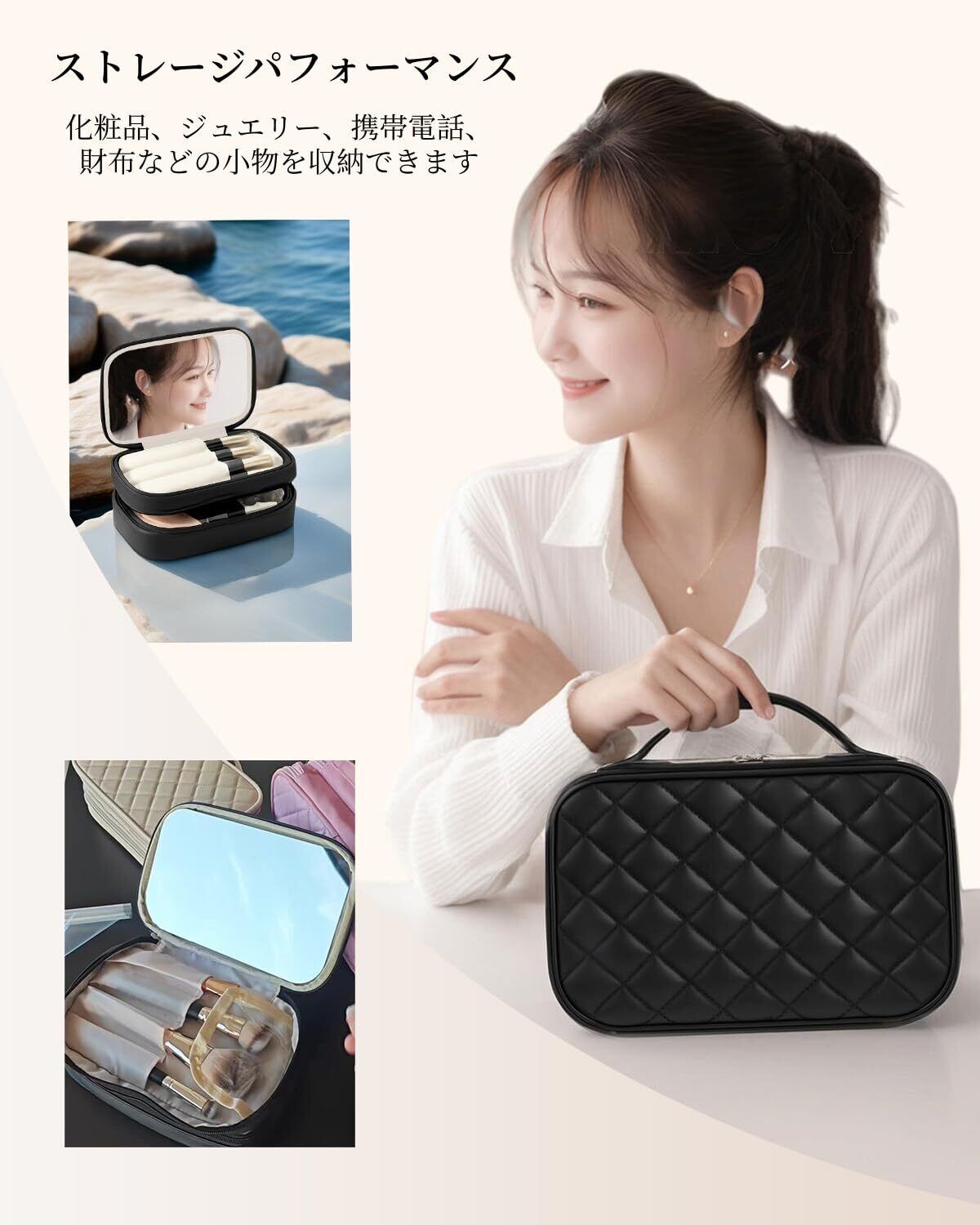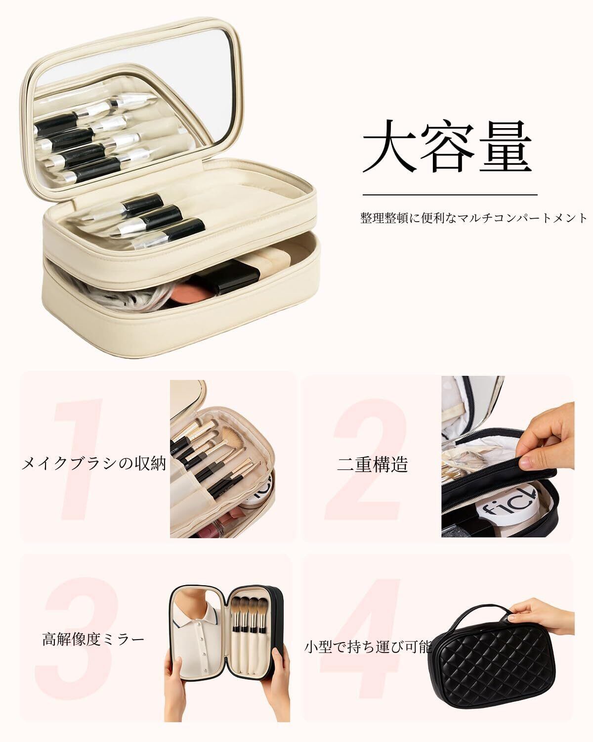 FLORPERRY メイクブラシケース大容量 化粧筆収納 メイクブラシポーチ 化粧ポーチ 小さめ メイクポーチ 持ち運び コス バニティメポーチ 旅行 小物入れ 化粧道具 コスメティックバッグ 鏡付き ブラック