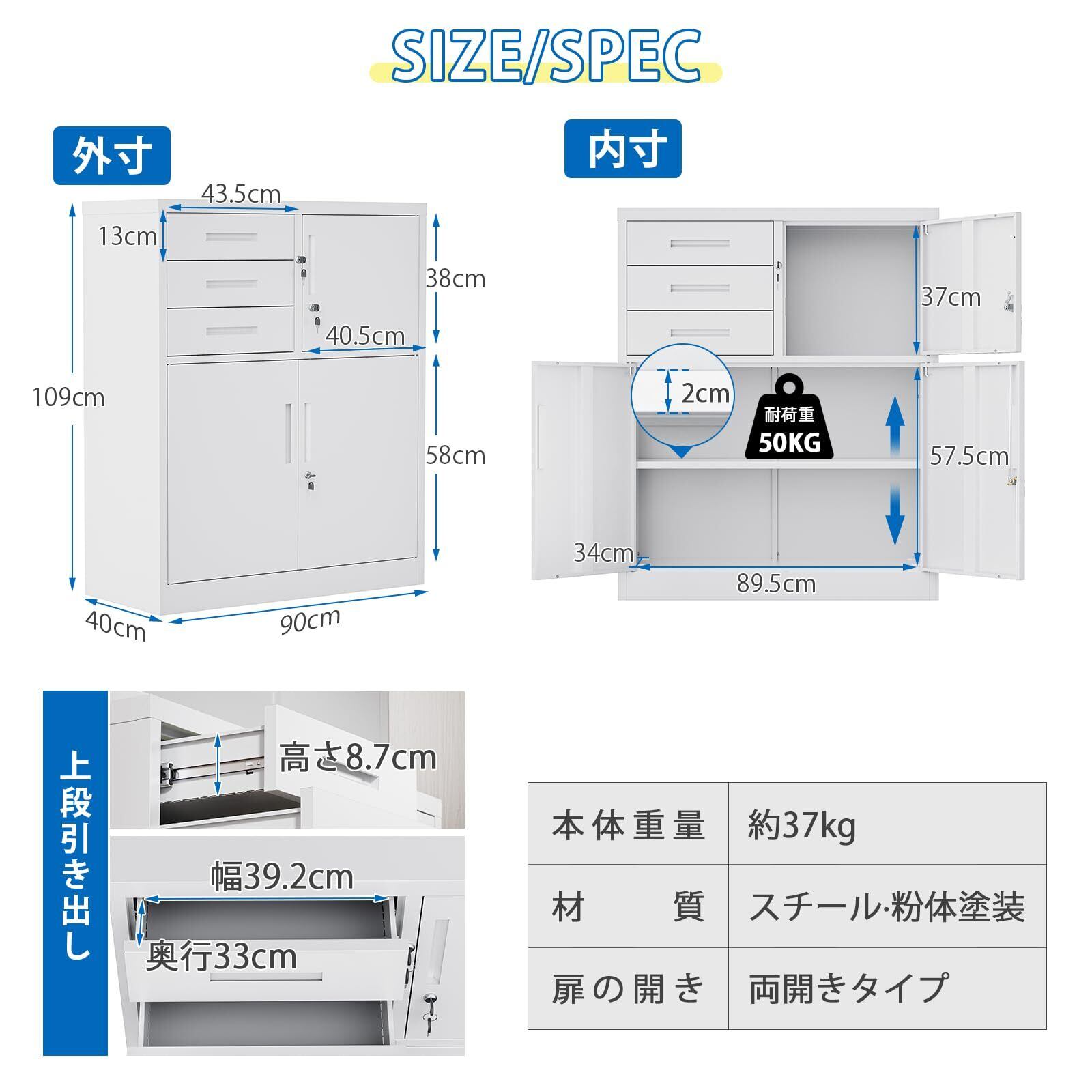 【安心設計】スムーズな引き戸式(両サイドにスライドガイド溝を設けております)。遮光扉仕様により、収納物を完全に保護いたします(中身が見えないプライバシー設計を採用)。防犯ロックを標準装備しております(シリンダー錠+スペアキー2本付属)→重要書類や貴重品の安全管理に最適でございます。