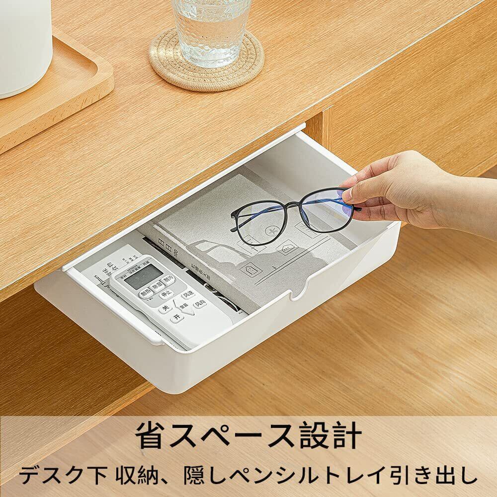 デスク下 収納ボックス 引き出し式 ミニ 小物入れ 収納整理 机下 収納 引き出し トレイ 文房具 便利 小物 収納ホルダー 強力粘着 工具不要 簡単設置 隠し(ホワイト)33*23.5*8.5cm