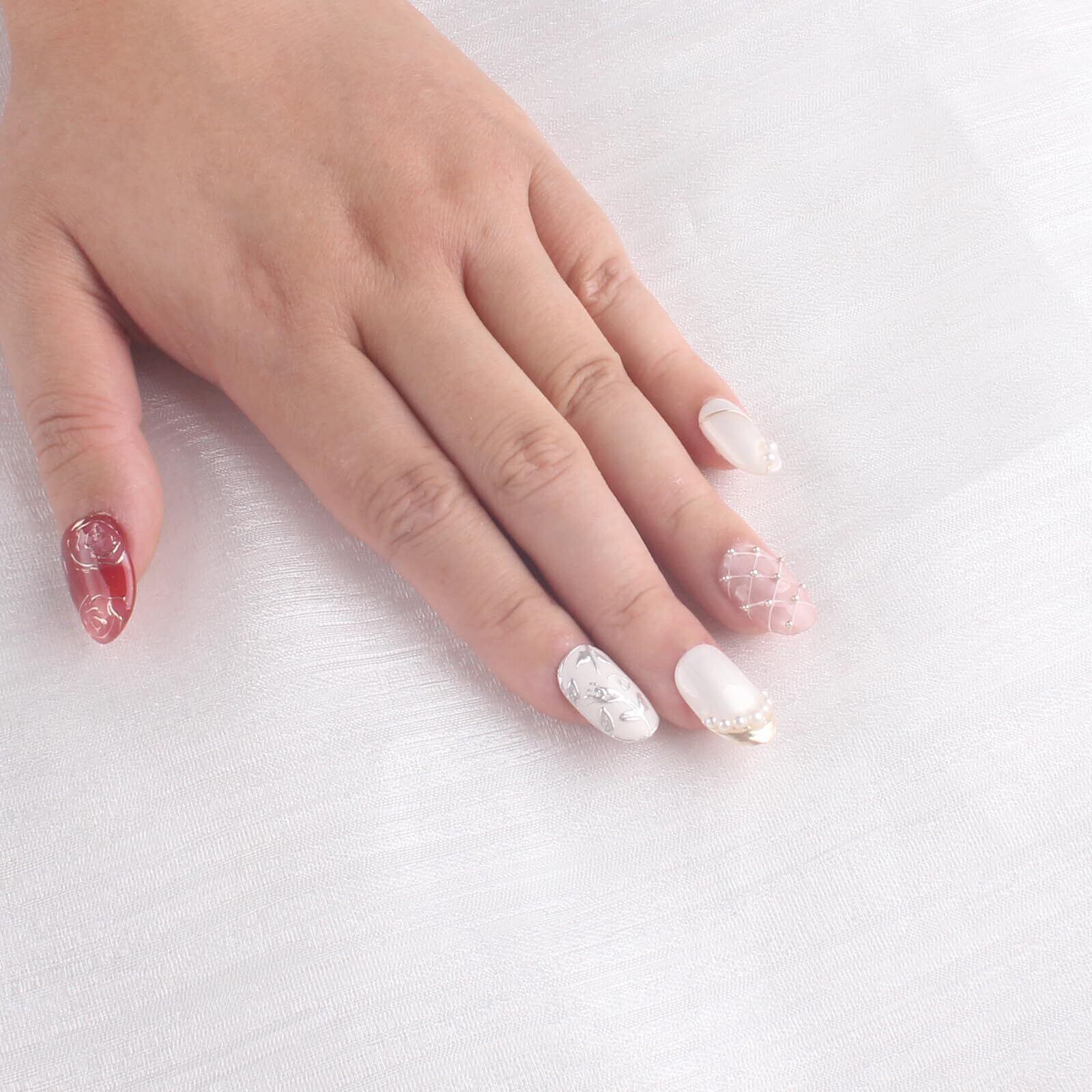MZCMSL 手作りネイルチップ 花 人気 3Dつけ爪入学式 卒業式 韓国 成人式 結婚式 収納ボックス付き (10枚入 · M)