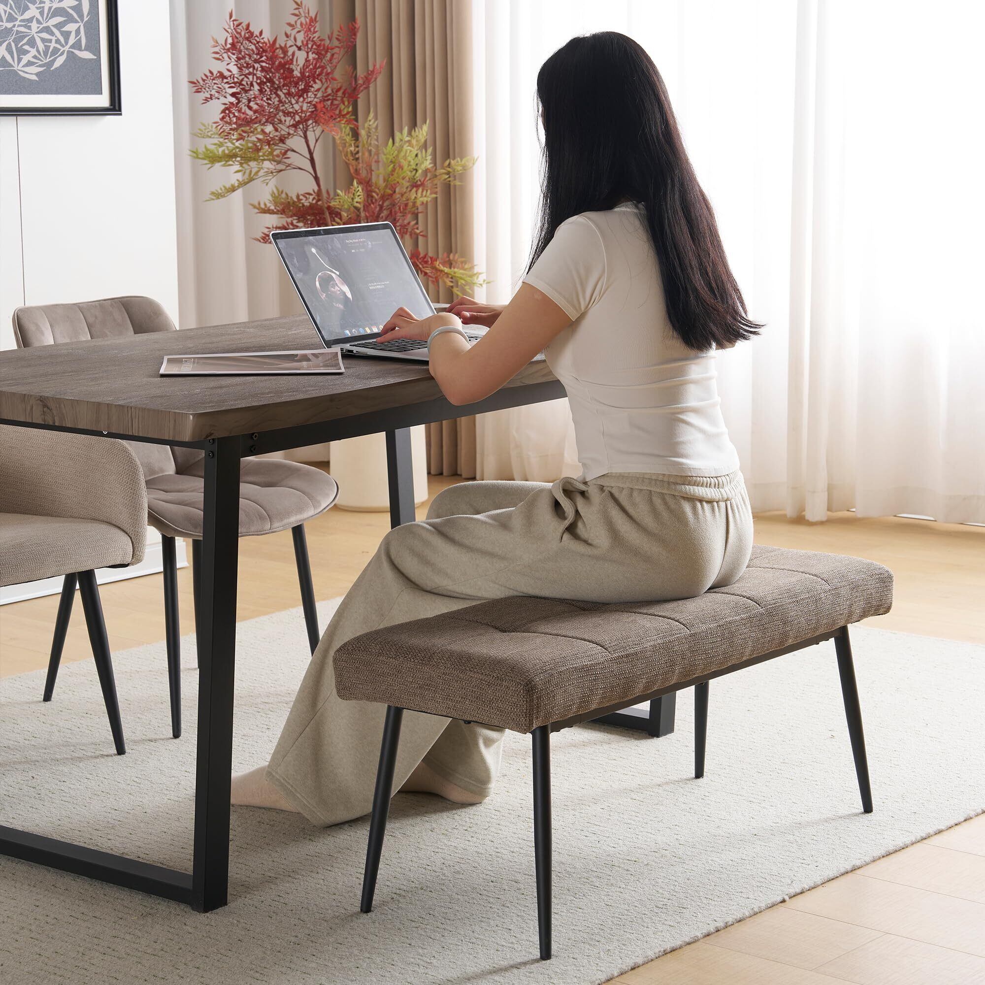 【サイズ】テーブル:幅140x奥行80x高さ76.5cm【耐荷重】60㎏ 【素材】テーブル:中質繊維板(MDF)、スチール(フレーム)、粉末塗装(スチール部) 【カラー】 ブラウン/ナチュラル 【重量】約14.4kg 【梱包重量】約16.3kg 組立品/完成品: 組立品