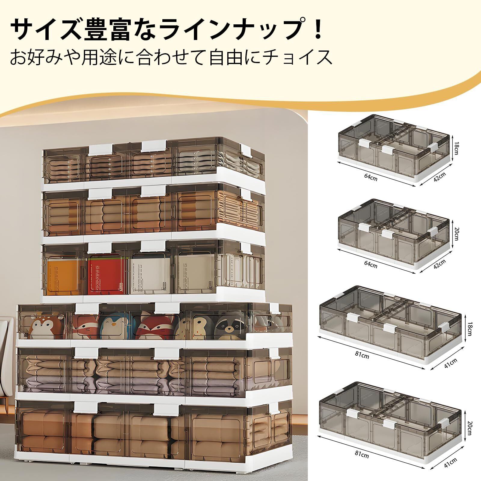 【積層対応型大容量マルチボックス】 頂部の溝加工が底部キャスターに完全嵌合する設計で、最大5段の安定積み重ねを可能にする収納ボックス ベッド下。衣類20着・布団2組・漫画60冊を収容する48L大容量でありながら軽量2.5kgのため、ベッド下はもちろん押入れ内での積層収納や、車載・屋根裏・ソファー下など多様な空間で効率的な収納ソリューションを提供します