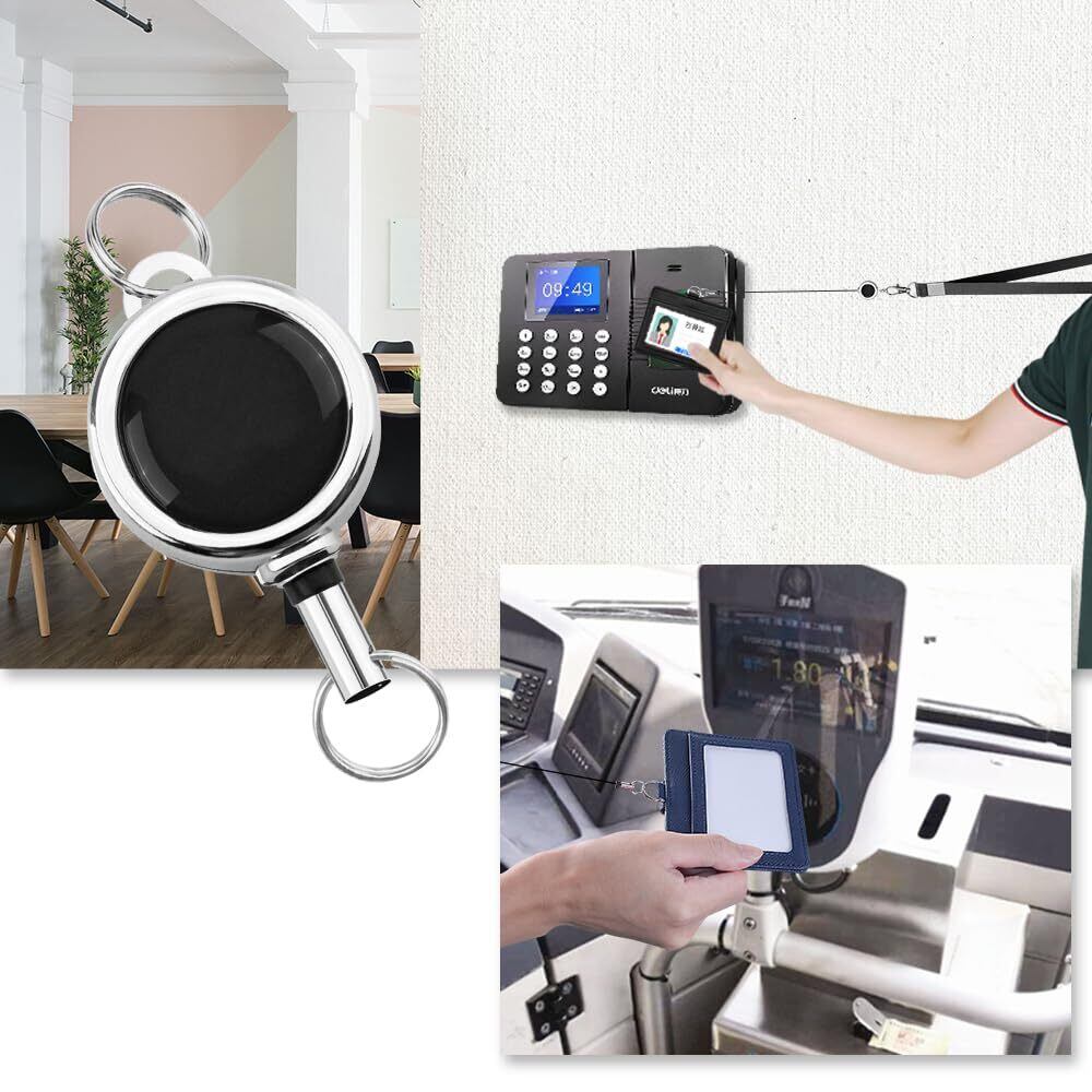 【伸縮リール付のIDカードホルダー】ストラップには、巻き取り式のリードが内蔵されていて、カードを引っ張ると36.8センチほど伸びます。巻き戻しが強く引っ掛かりも無く、スムーズに伸びるリールの紐は特殊強化タイプで、切れにくく丈夫で長持ちする点も魅力です。ストラップの長さを調整可能、手を離すと自動的に戻ります。保安エリアでID認証する際に首にかけたまま届く構造です。定期券に応用すれば、リードを引っ張るだけで改札機にタッチできる便利さもあるでしょう。リールボディは同じ色の素材で構成されており、見た目も美しいデザインです。どのような服装、小物にもマッチしますので、男女問わずに活用でき、また世代を超えて幅広い年齢層にお使いいただけます。ホルダーとネックストラップの間の伸縮性リールが日常での使い勝手を向上させています。