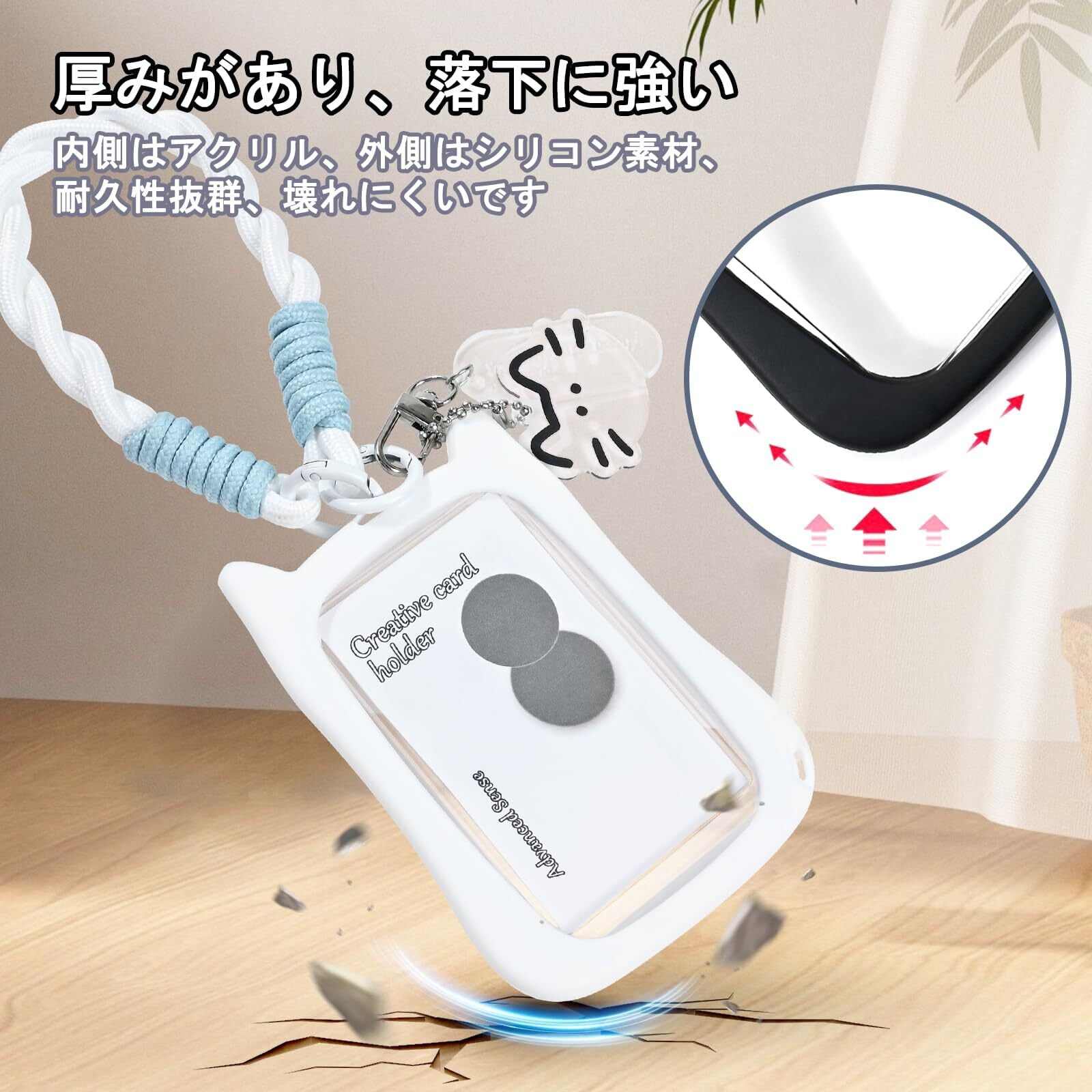 Newseego パスケース 定期入れ かわいい レディース ICカードケース トレカケース 推し活 薄型 縦型 キーホルダ付き ストラップ付き 社員証 ICカード 通勤 通学 可愛い猫柄 キャラクター 両面透明