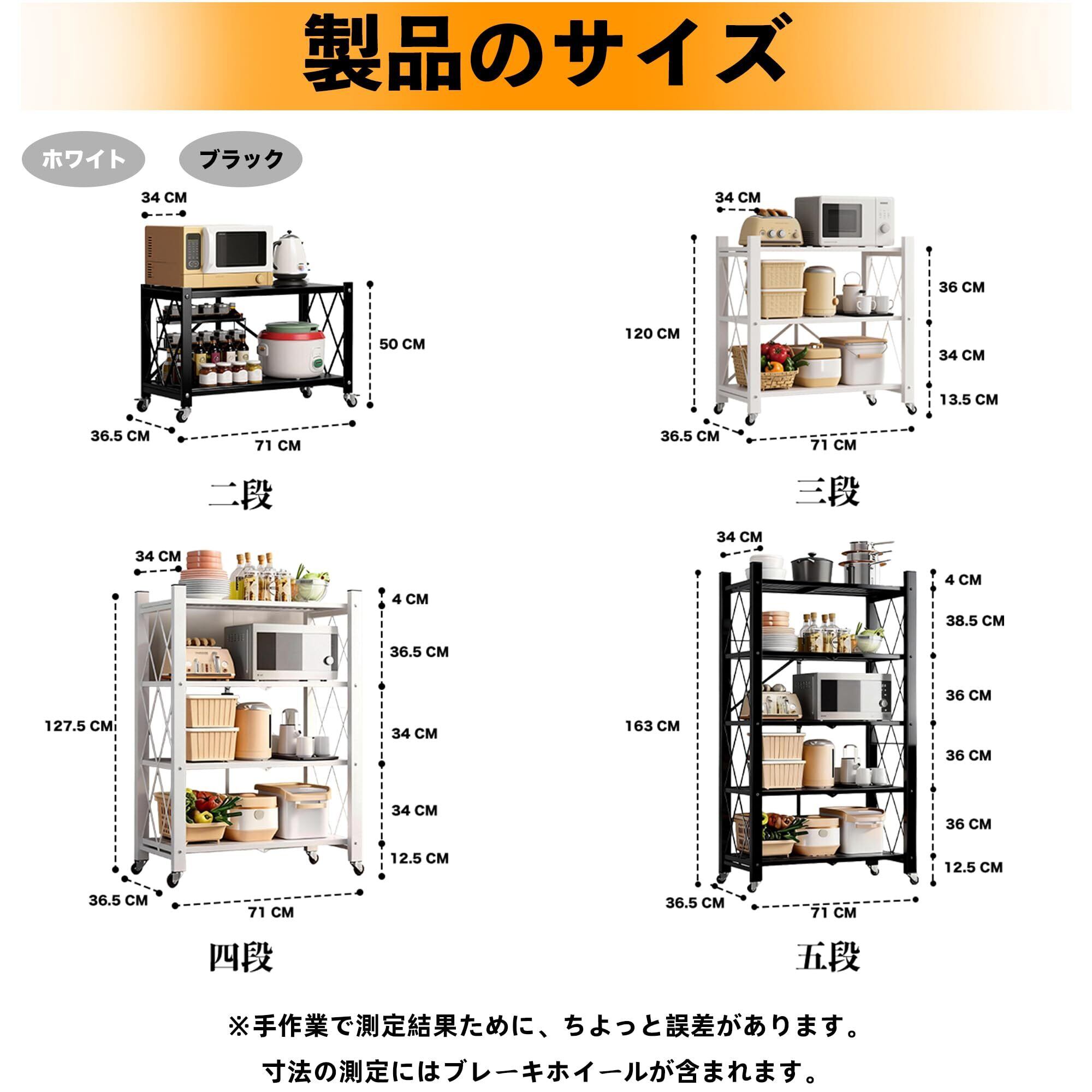 折りたたみラック スチールラック 折り畳みラック 収納 棚 メタルラック 3段 キャスター付き シェルフ コンパクト シェルフ キッチン収納 本棚 全体耐荷 業務用 組立商品 移動便利 食器棚 防サビ加工 お手入れ簡単 大容量 組立簡単(ブラック,三段)