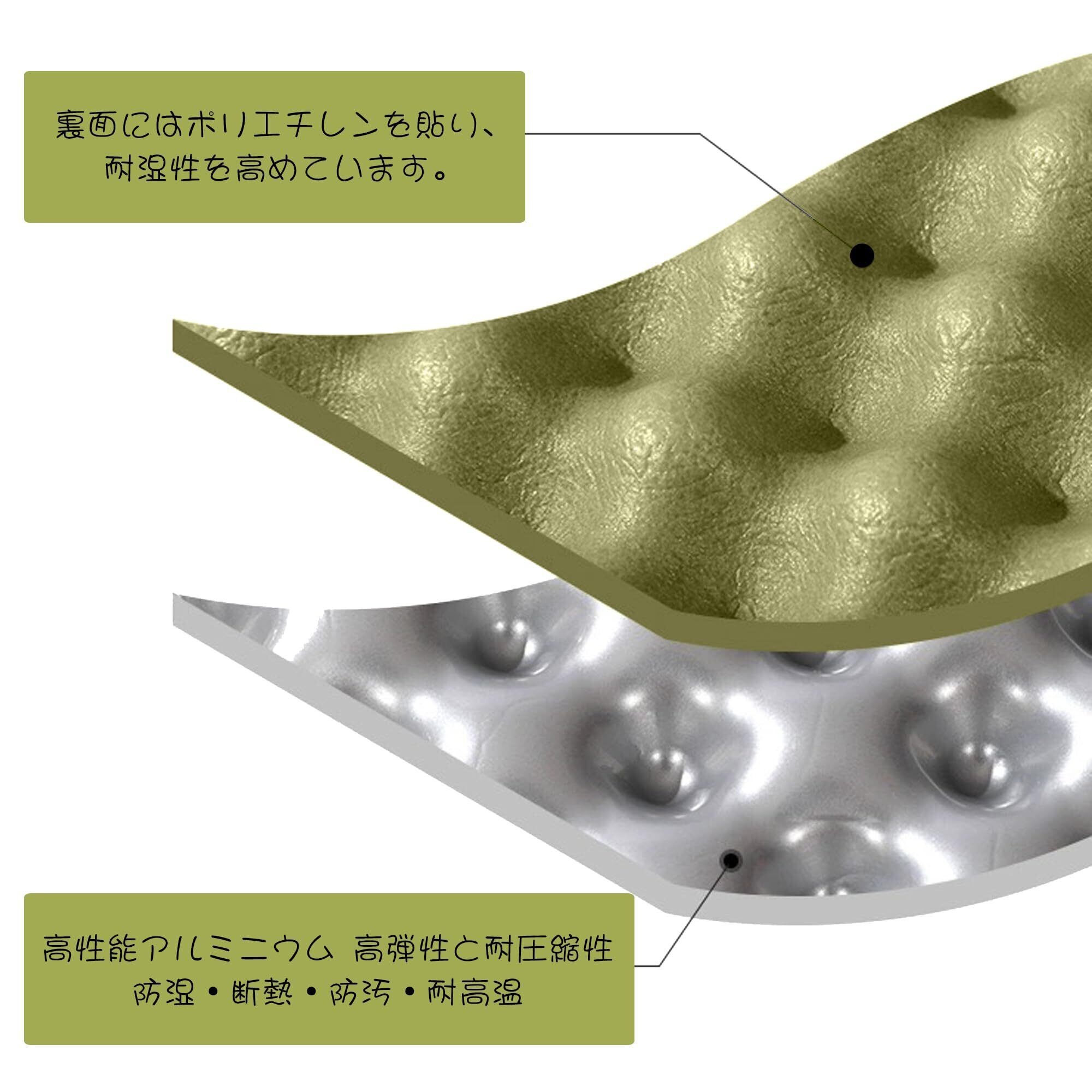 【湿気と冷気をブロック】このマットはポリエチレン素材を採用しており、耐久性があり、軽量で、傷がつきにくく、耐衝撃性に優れています。 表面の凹凸が湿気や冷気を遮断し、体が冷える心配がありません。 河川敷などの石があっても怪我をしにくいので、キャンプのテントマット、車中泊用の寝袋マット、山や川のレジャー、運動会、一人キャンプにもおすすめです。