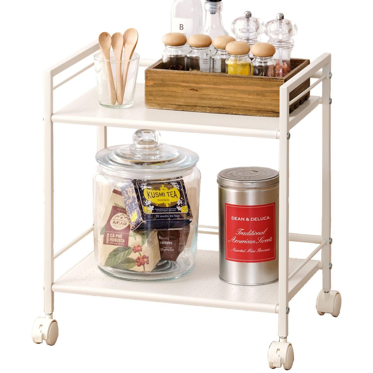 ドウシシャ パンチングラック 2段 キャスター付き 収納ワゴン アイボリー ストッパー 取っ手付き 全体耐荷重12kg 幅43×奥行29.5×高さ47cm キッチン レンジ台 炊飯器 クローゼット 押入れ収納 デスク下 ランドリー GC-P46IV