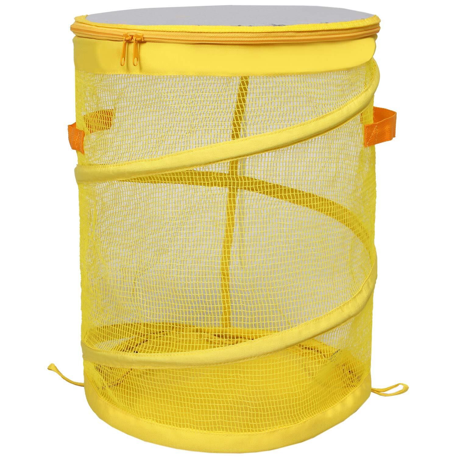 アストロ ポリエステル 屋外用ゴミ箱 円柱形 7.9gallons イエロー カラス除け ゴミネット ボックス ゴミストッカー 折りたたみ 822-09, 小