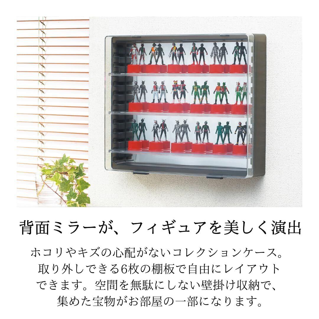 ●背面ミラー付きで奥行き感を演出し、6枚の棚板はフィギュアの高さに合わせて自由にレイアウト変更が可能。