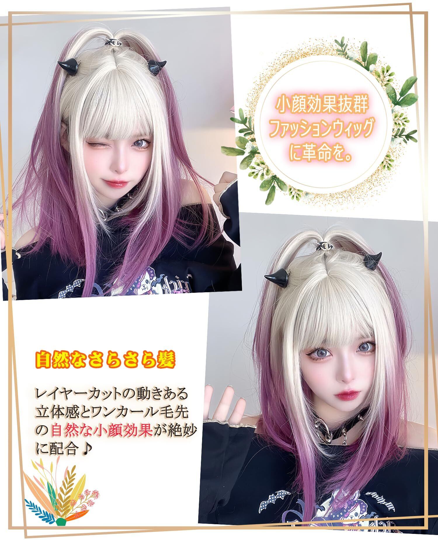 Limakaraウィッグ セミロング ストレート かつら フルウィッグ グラデーション インナーカラー 可愛いギャル 自然 ロング 女性 小顔 人気 耐熱 wig 原宿 ネット/櫛付き (グラデーション(ベージュ/パープル))