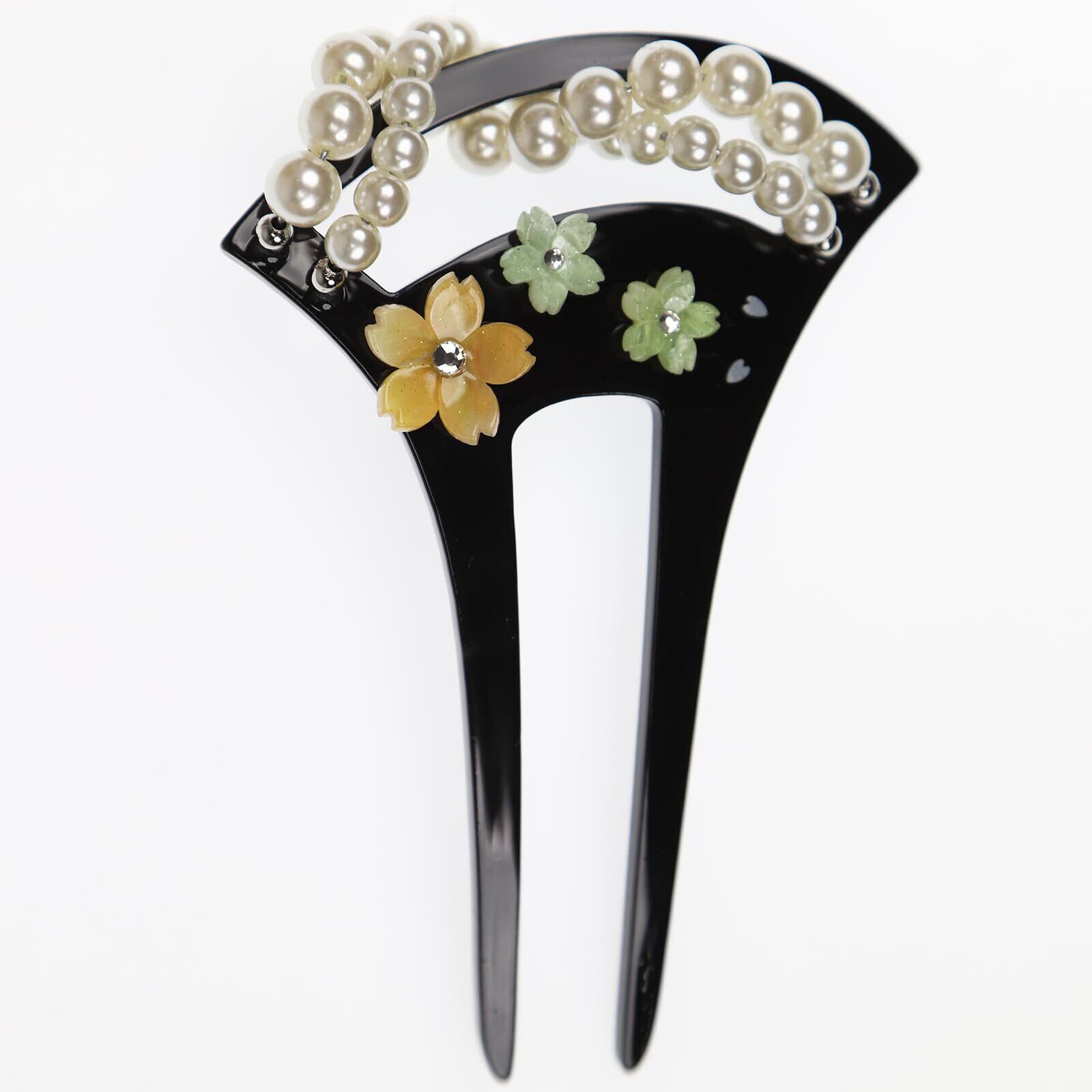 【上品かわいいなバチ型簪】パールがあしらったことで、上品で華やかな印象を与え、立体感のあるとても可憐なさくらのかんざしです。小さくて主張しすぎず控え目なのでどんなファッションにも合わせやすいです。