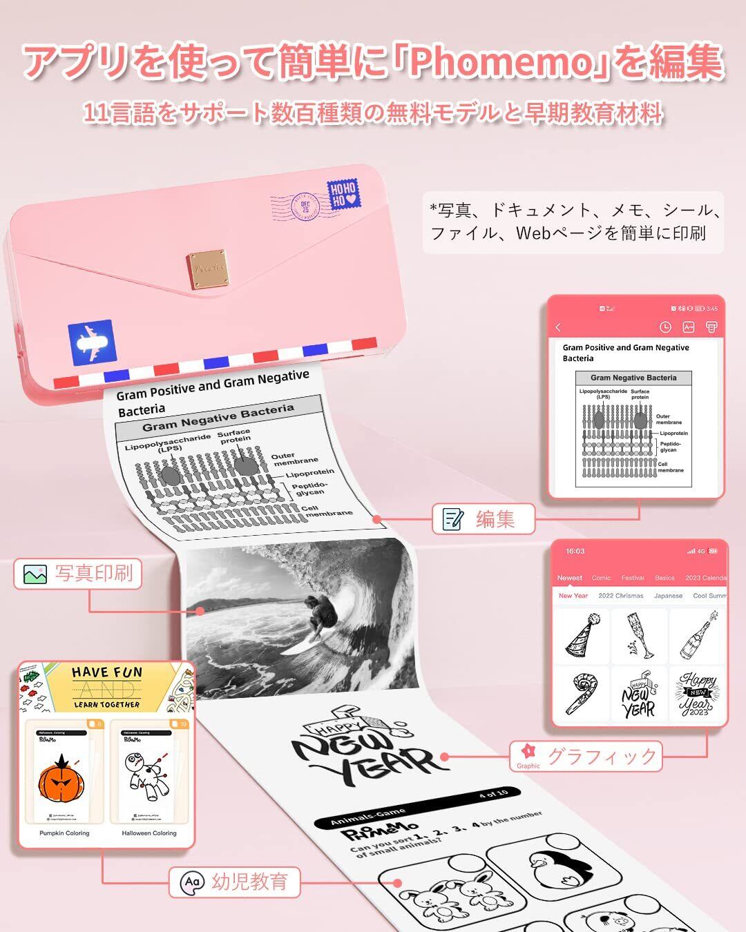 Phomemo M04AS モバイルプリンター 感熱式ミニプリンター15/53/80/110mm感熱紙対応 フォトプリンター ノートプリンター スマートBluetoothプリンター 付箋プリンター ラベルプリンター 300dpi 写真/ノート/メモ/クリスマスギフトに最適です 110mm透明感熱紙1巻付属 日本語対応