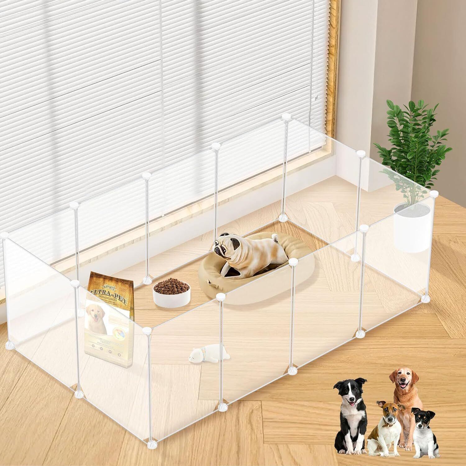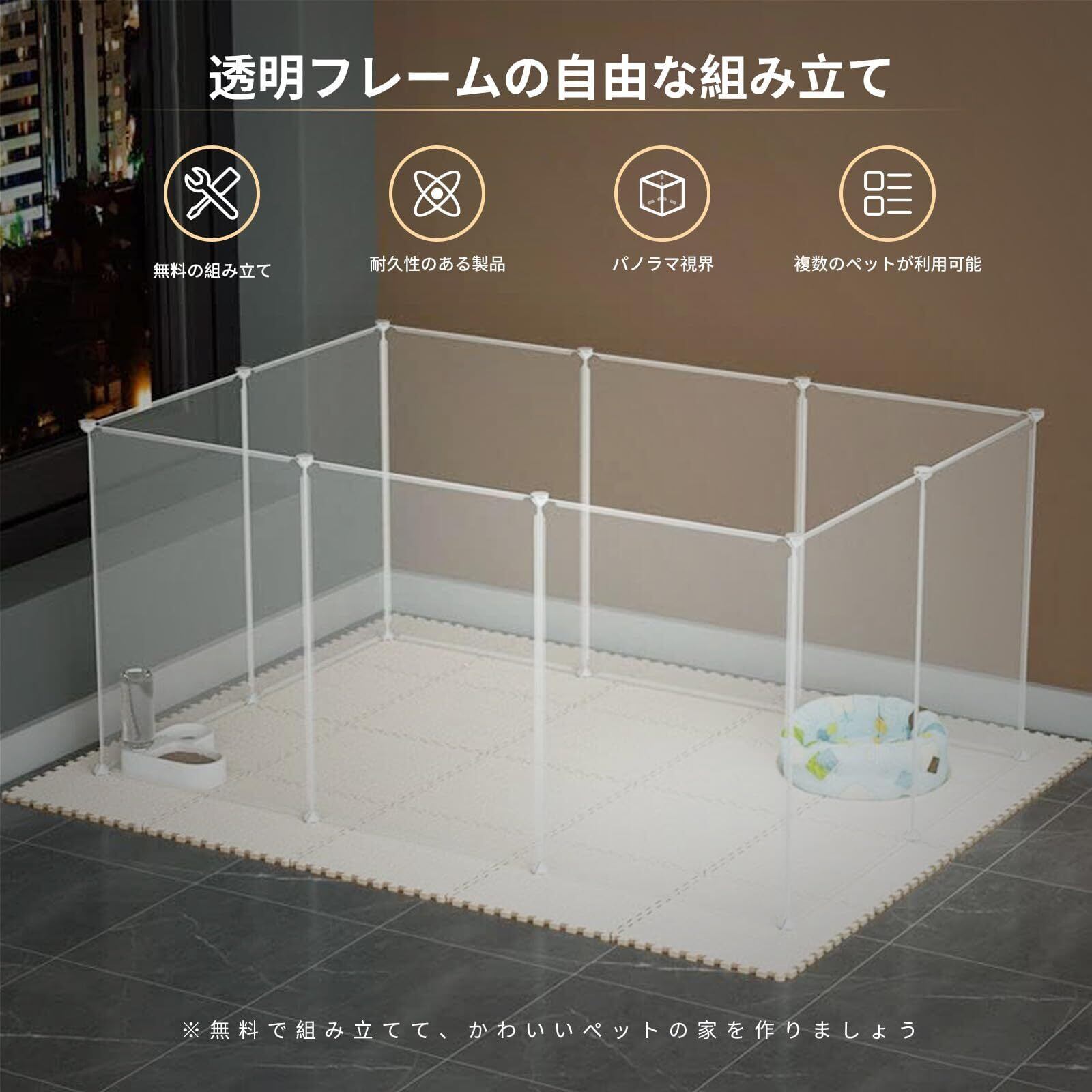 ペットフェンス サークル 犬 室内 屋外兼用 置くだけ簡単 自立式 透明パネル 脱走防止 小型犬・中型犬対応 ジョイント式組み立て ペット用柵 ケージ代替 パネル 12 枚 サイズ調整可能 ペットの安全スペース確保