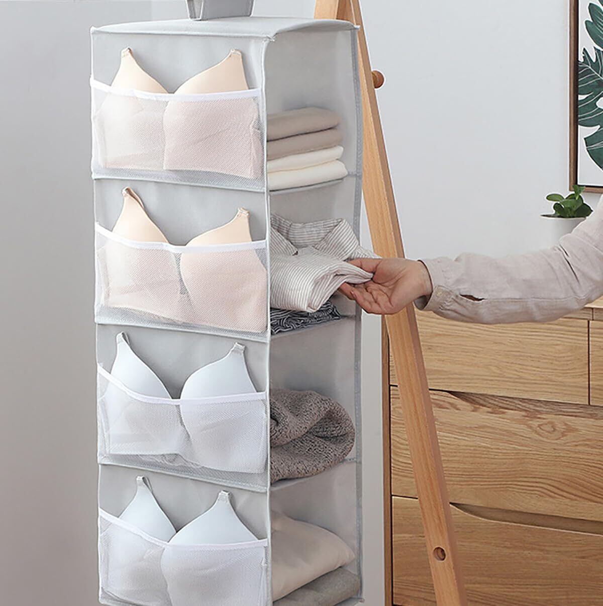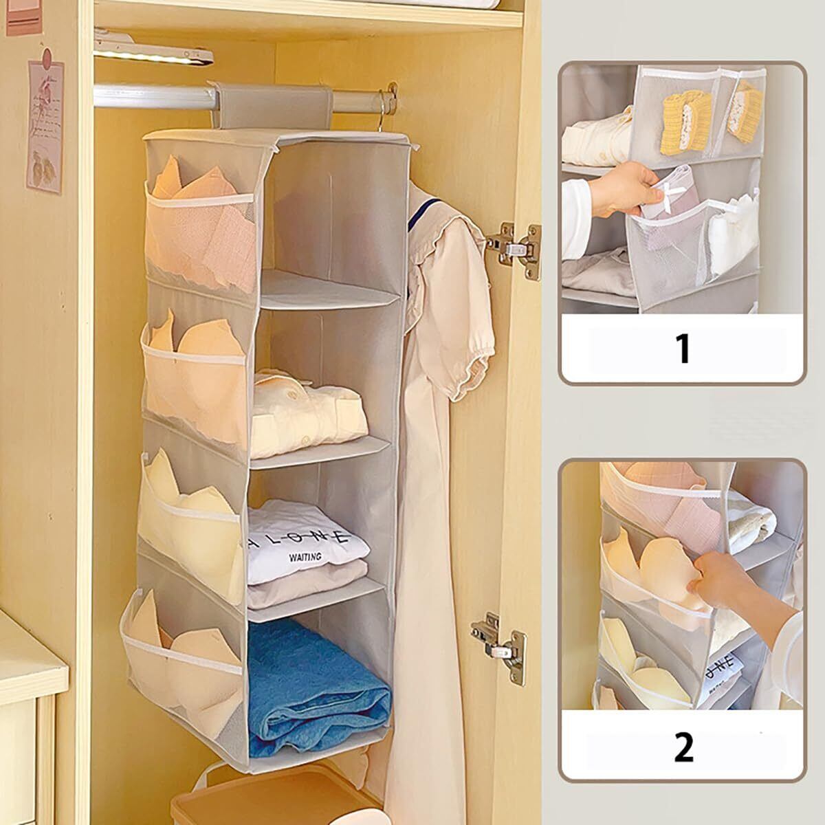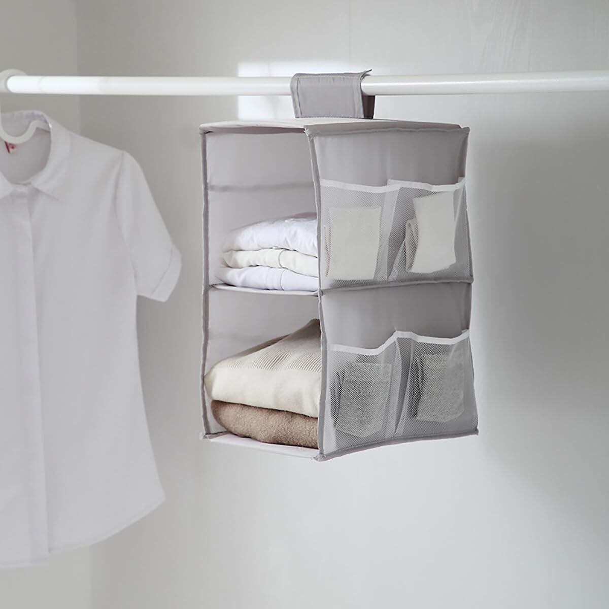 吊り下げ収納 2段式 3段式 衣類ラック クローゼット 水洗い可能 防湿防カビ 取り付け簡単 下着 靴下 帽子 収納 インストール不要 (グレー, 2段式)
