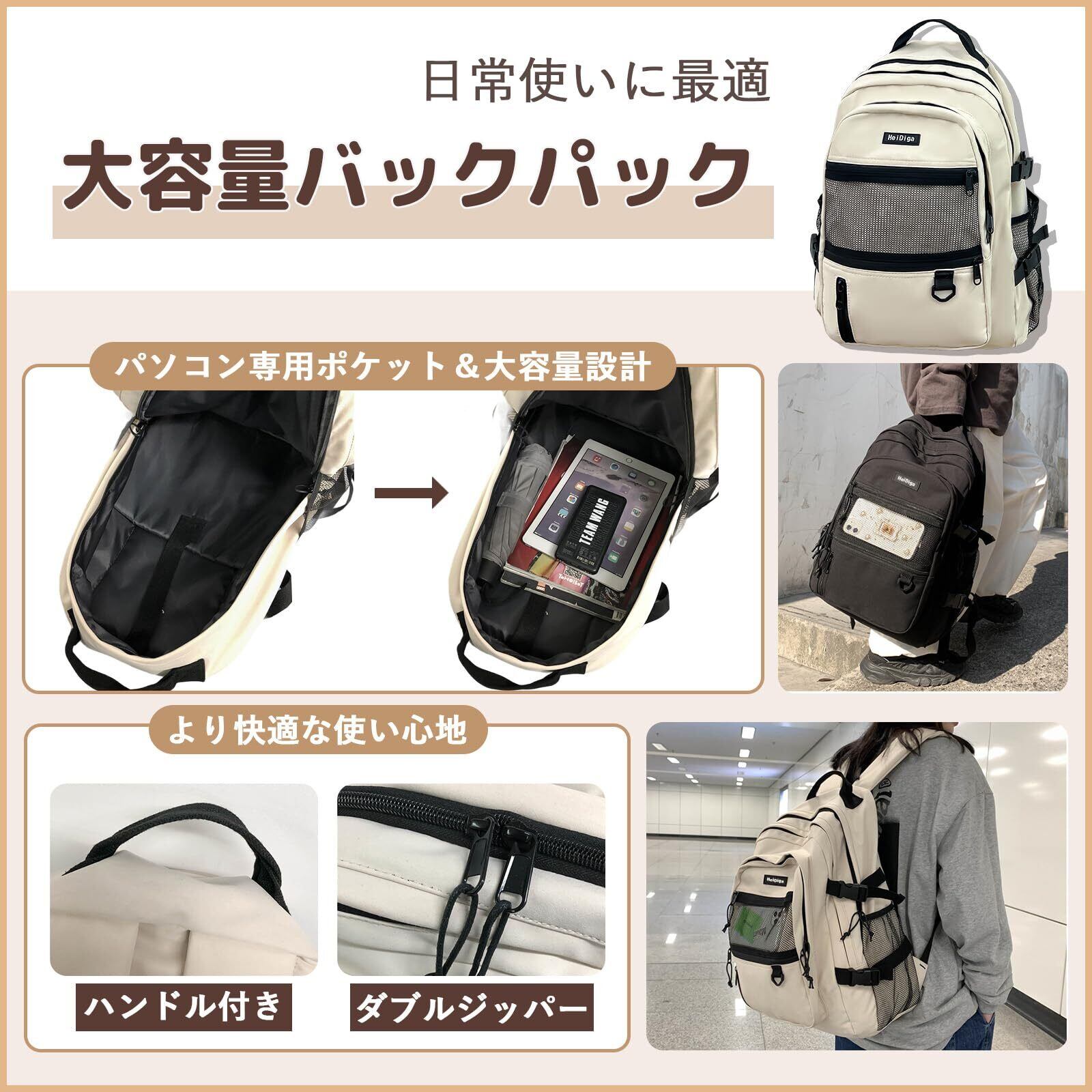 【大容量&多ポケット】この大容量リュックサックは。独立したノートパソコン用コンパートメントは15.6インチのノートパソコンを簡単に収納できます。大容量のメインバッグには、本、昼食、軽装、学用品、旅行用品などの日常的な必需品を収納することができます。フロントファスナーポケットは鍵、ペン、鉛笔を収納できます。2つのサイドポケットは水筒や傘を入れられます。すべてのアイテムをきちんと整理して簡単にアクセスできます。
