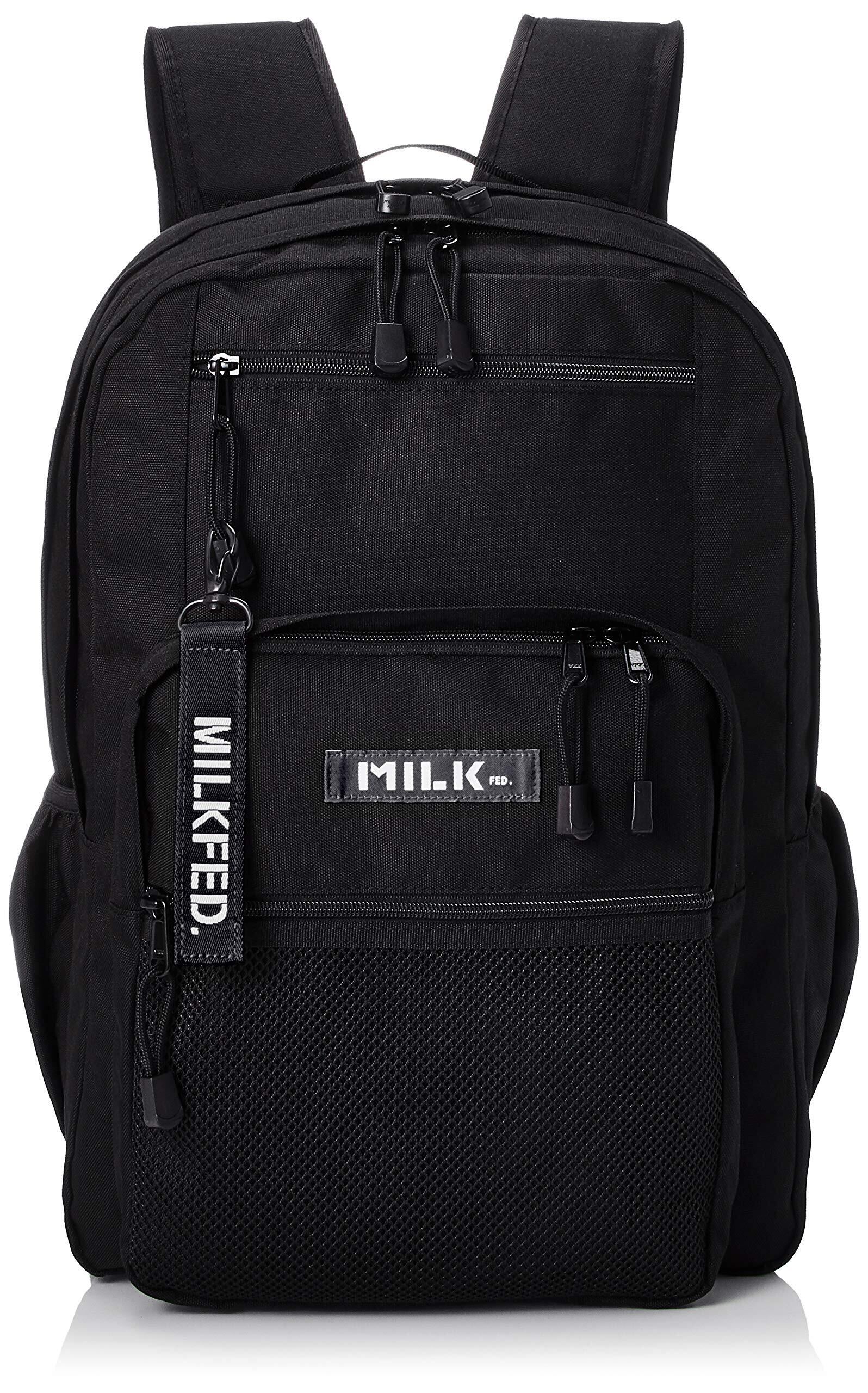 MILKFED.ロゴがデザインされたダブルジップ仕様のバックパック。容量が大きく、収納スペースにも優れた旅行時に最適なアイテム。