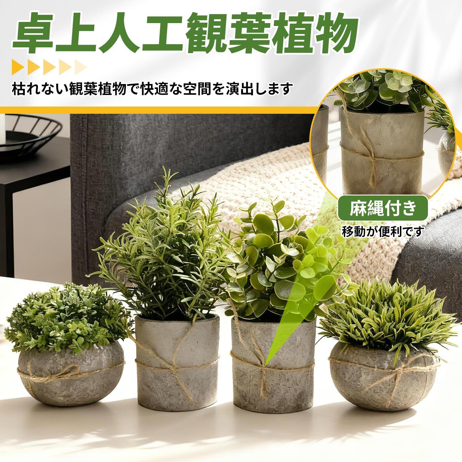 人工観葉植物 4点セット フェイクグリーン 枯れない 卓上 インテリア 造花 鉢植え 手作り 本物 癒しの 小物 水やり不要 お世話不要 緑化アイテム 癒し空間 雑貨装飾 コンパクト 室内装飾 ギフト 結婚式 新築祝い お祭り贈り物