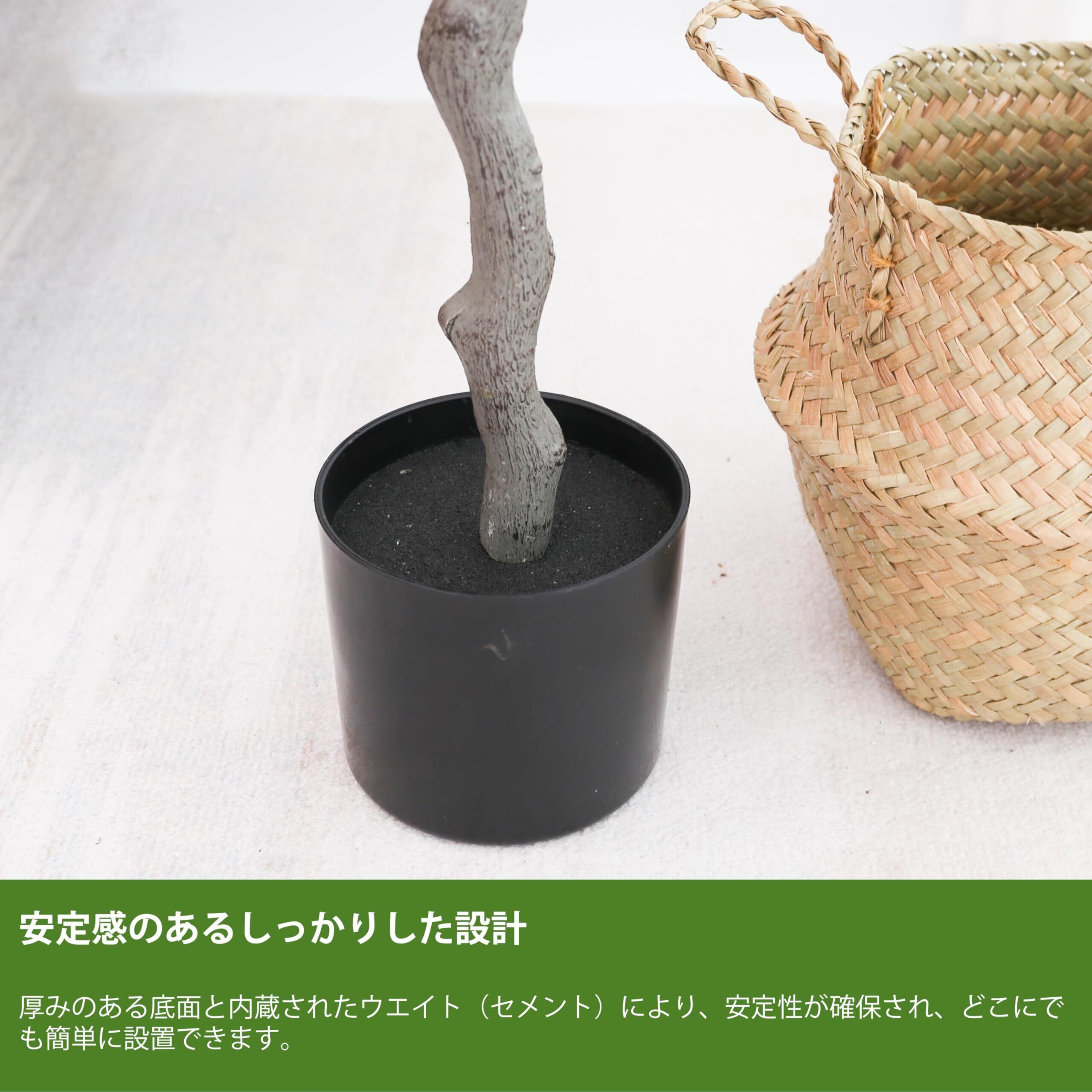 自然さと美しさ: 本物のような美しさ。落ち着いた緑色の葉が、お部屋に上質な安らぎをもたらします。