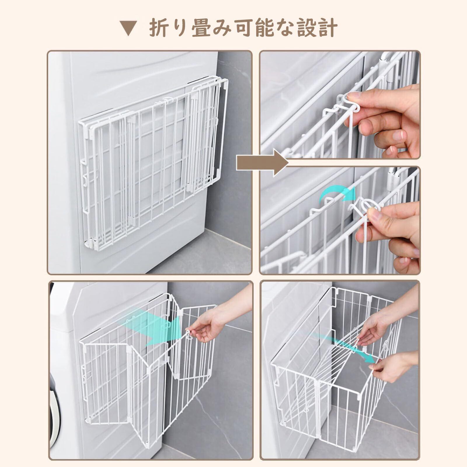 マグネット吸着折りたたみ収納バスケット 大容量 洗濯機横収納 脱衣かご 折り畳み式 省スペース 棚 スリム シンプル おしゃれ コンパクト 壁掛け お風呂バスラック 冷蔵庫収納 洗濯機置き場 おもちゃ収納 キッチン・浴室・ランドリールーム適用 (ホワイト, L)