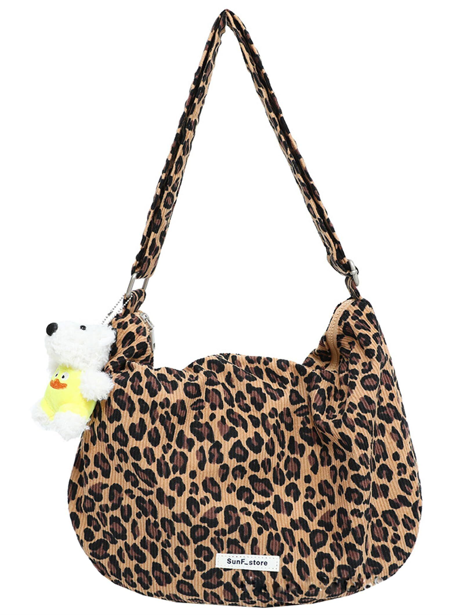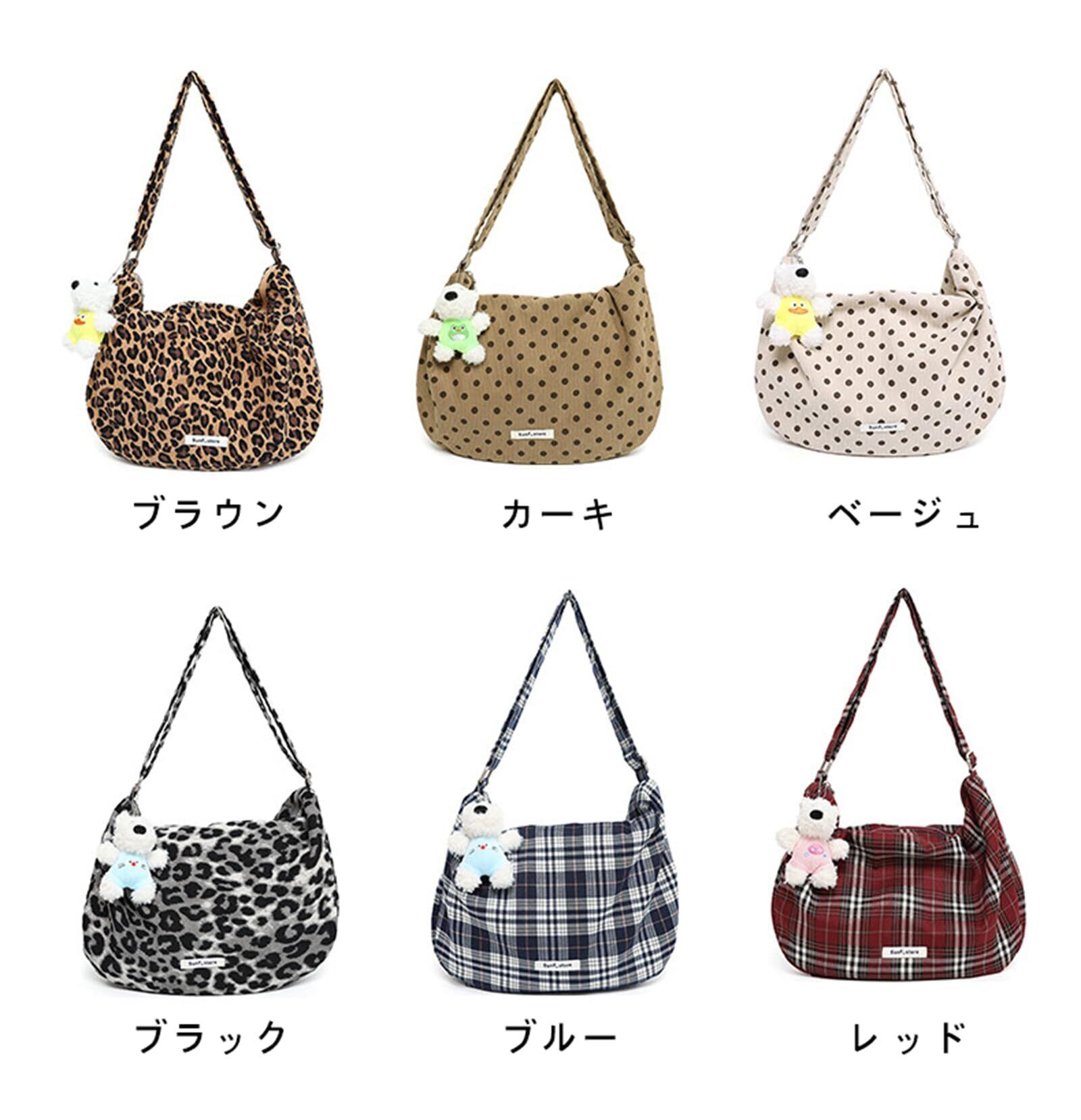 ヒョウ柄 コーデュロイ ショルダーバッグ 斜め掛けバッグ レディース 大容量 大きめ A4対応 学院風 通学 肩掛けバッグ 韓国カバン ファスナー付き ハンドバッグ 3way ドット柄 チェック柄