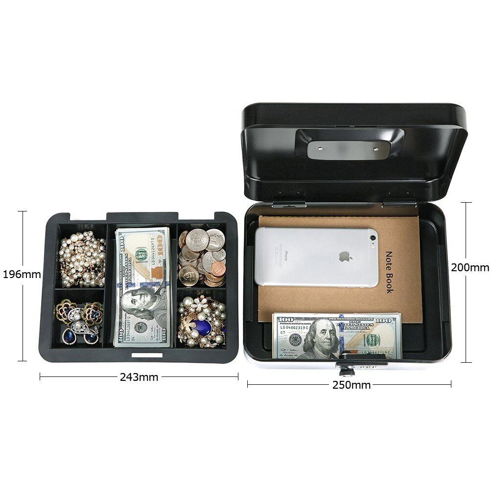 Jssmst(ジェスマット)手提金庫 ダイヤル式 金属製 25x20x9cm A5サイズ CB0701L (黒)