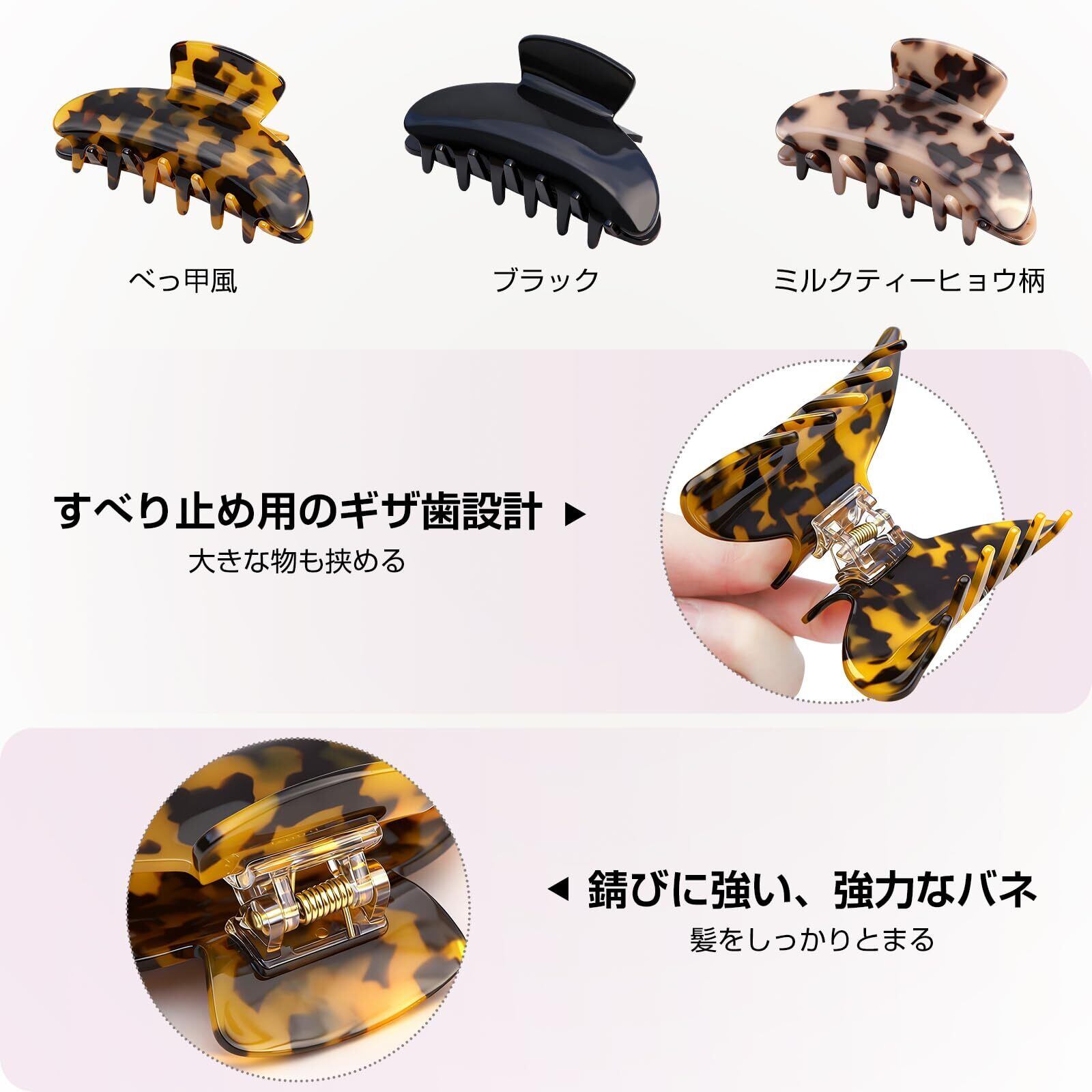 ヘアクリップ しっかりとまる ヘアくりっぷ 可愛い バンスクリップ 軽い 強力 髪留め クリップ 髪飾り 韓国風 おしゃれ 大人向け 小さめ 髪留め バレッタ 優雅 エレガント 日常 お風呂 2個入り べっ甲風とブラック