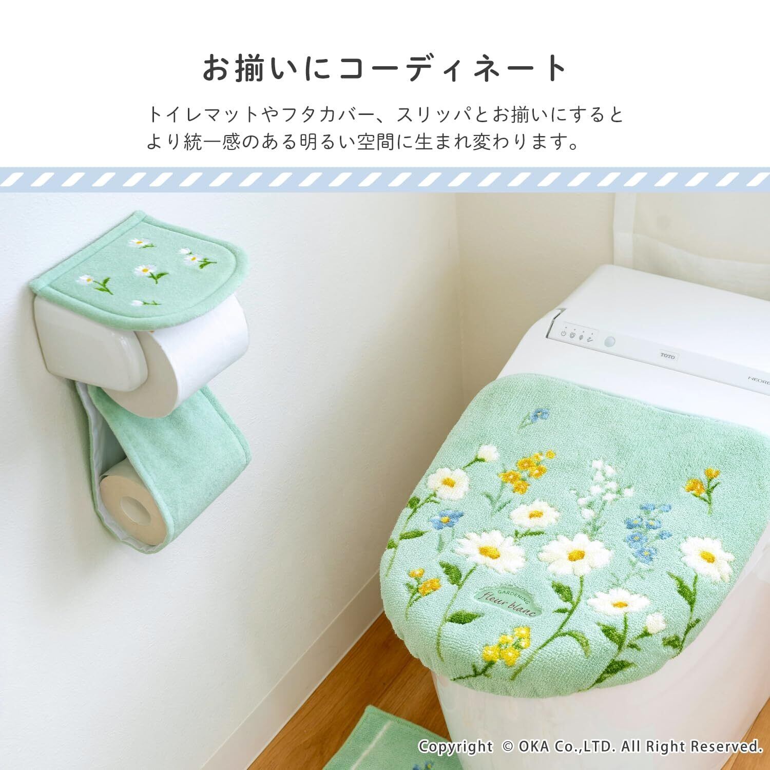 オカ(OKA) フルールブラン トイレットペーパーホルダーカバー ピンク (洗える 花柄 フェミニン 北欧 ストック収納付き)