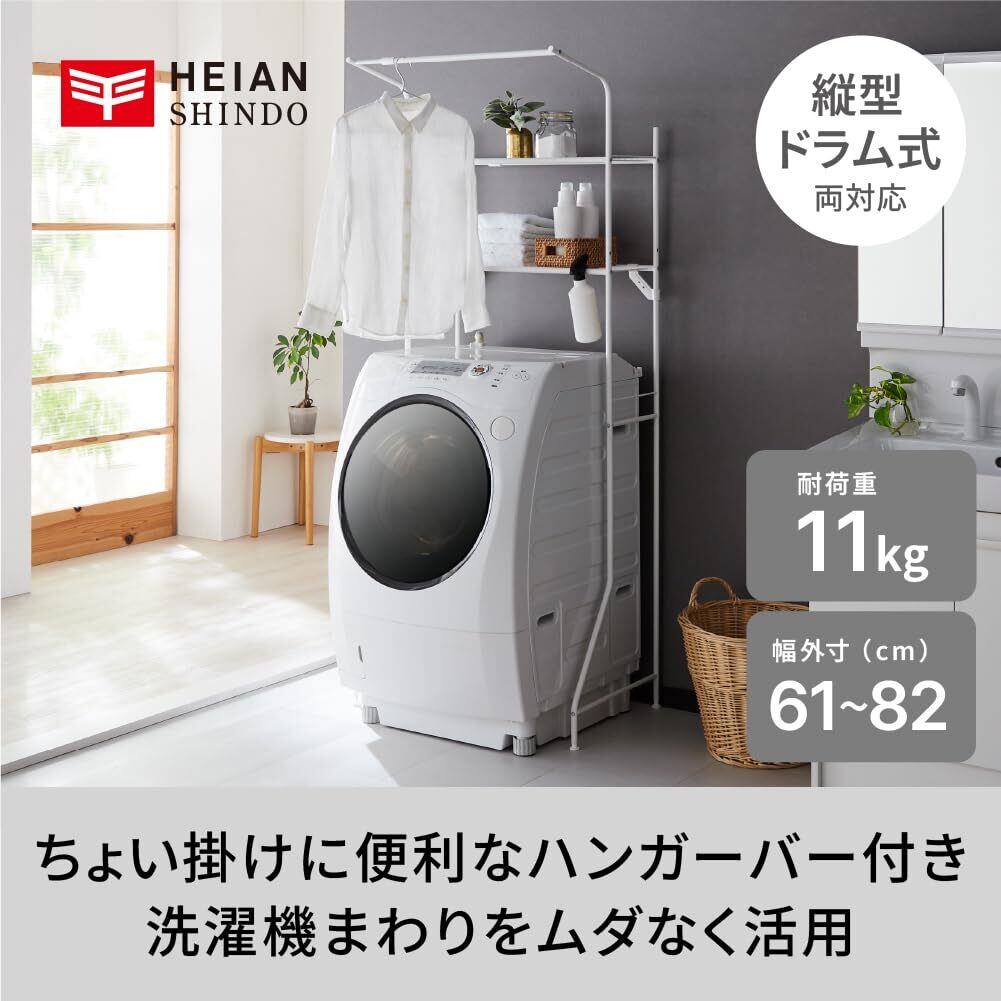 平安伸銅工業 HEIAN SHINDO スリムランドリーラック 棚2段 ハンガーバー付き マットホワイト 幅61-82×奥行53×高181cm HSR-2WH