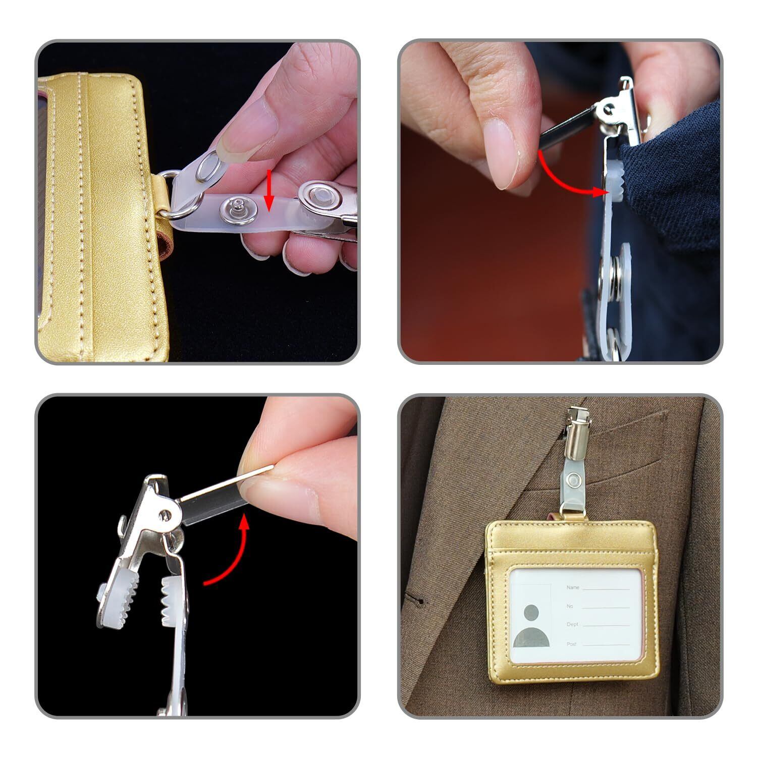 本革 IDカードホルダー - 厳選牛革 横型&縦型 IDカードケース 社員証 レザー オシャレ 定期入れ ネームホルダー 両面用 名札 パスケース 胸ポケットクリップ&伸縮リール式 クリップストラップ付き (縦型パールシルバー)