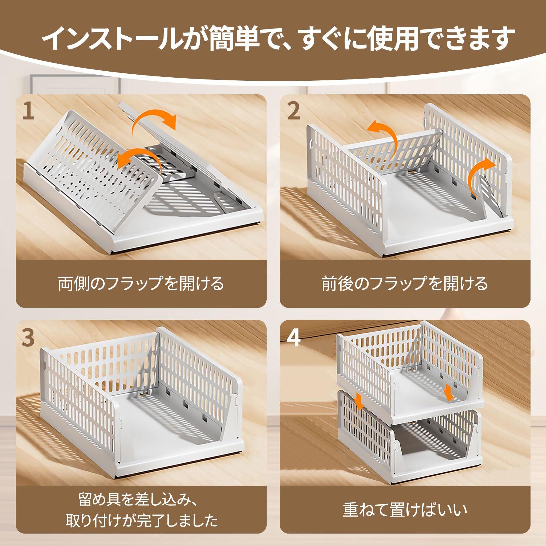 【大容量・省スペース】サイズ:幅32.5cm×奥行き43cm×高さ18.5cm。シンプルな組み立て構造で、ボックスを多段に自由に組み立てることができます。引き出し式はスムーズにスライドします。使用しないときは折りたたんで保管でき、スペースを節約できます。
