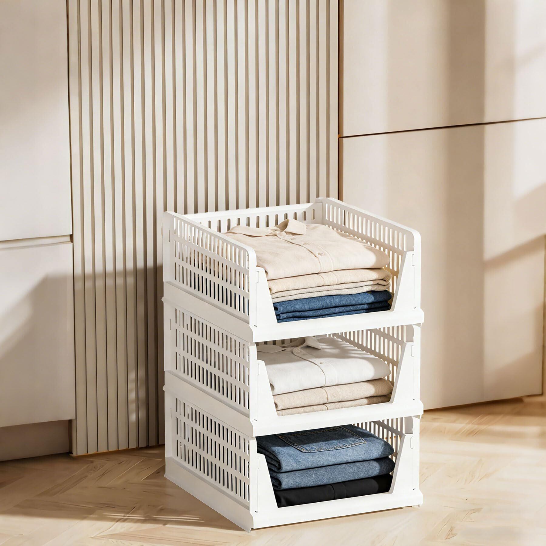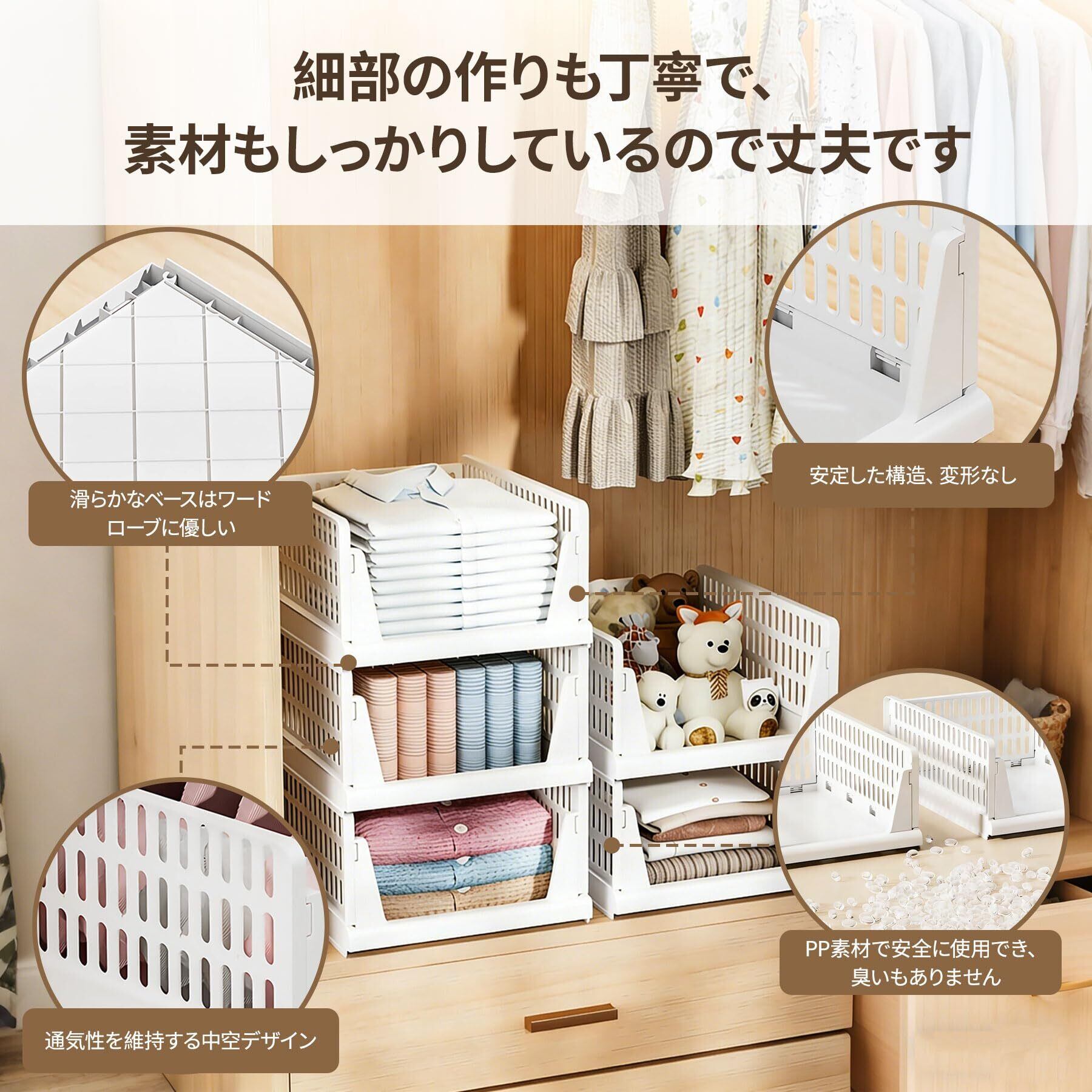【高品質で安定】1つで20kg以上の耐荷重があり、使用時は複数の収納ボックスを積み重ねることができます。本や冬のコートの重さにも負けない強さ。箱底部は組み立て時のたわみや衝突を防ぐロック構造を採用しています。