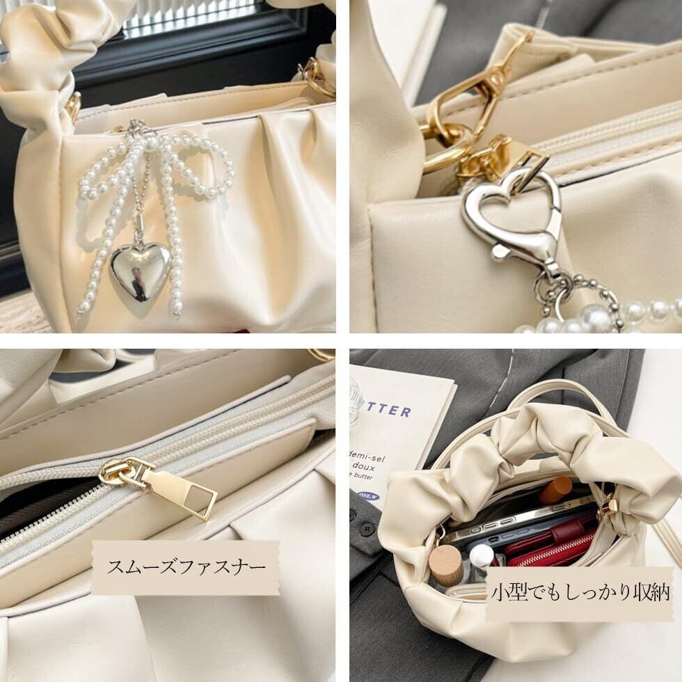フェミニンな感じの肩が軽いパールリボン付きバッグ 女性らしくて可愛いスタイル。手持ちトート・肩にワンショルダー・クロスショルダー 3つの違う雰囲気演出可能のシンプルだけど可愛いスタイル