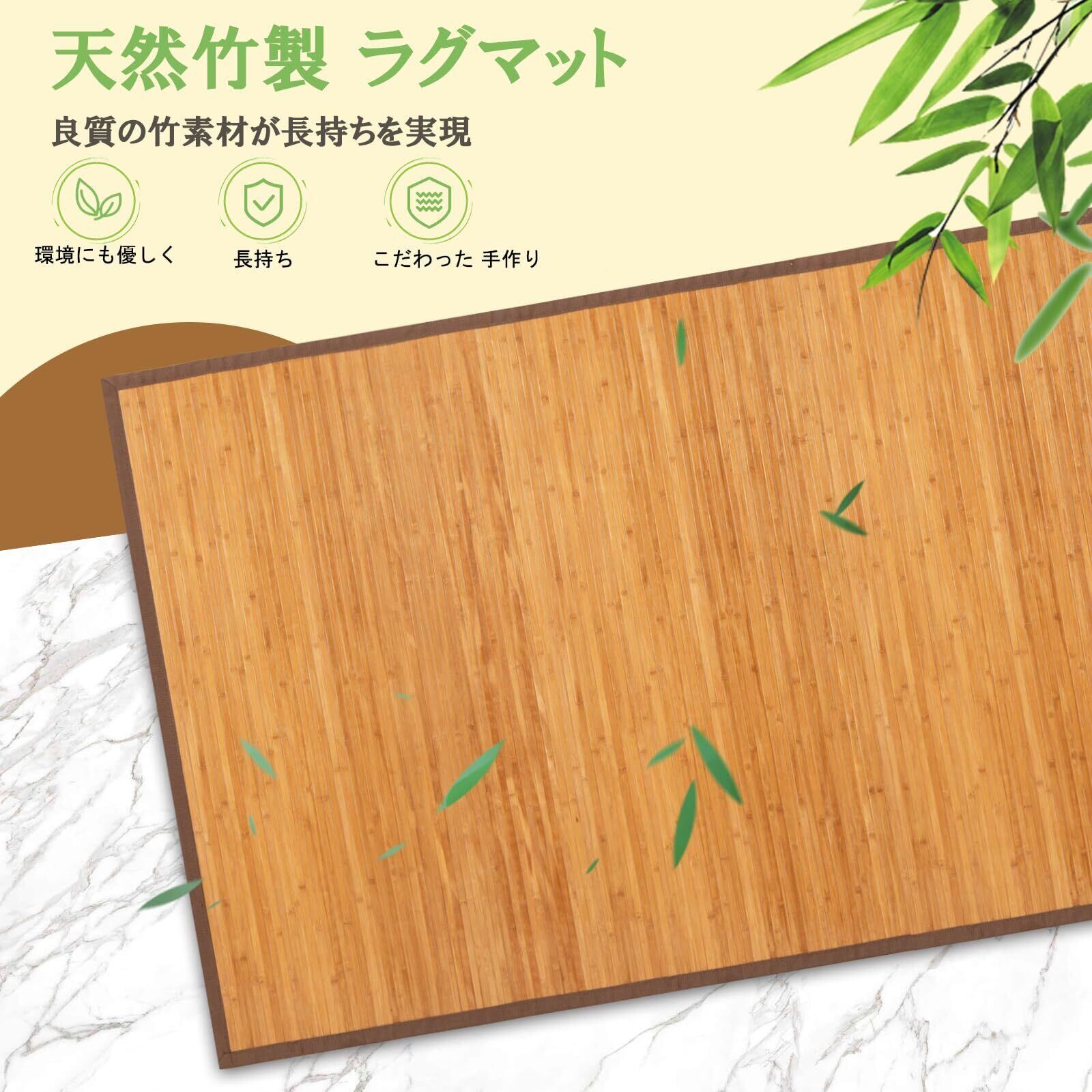 【自然の竹素材】厳選された天然竹を職人の手により丁寧に編み上げた高密度ラグ。頑丈で長持ちする品質を約束します。竹がもたらすナチュラルな風合いと、夏の涼やかな肌触りが空間に清涼感をプラス。